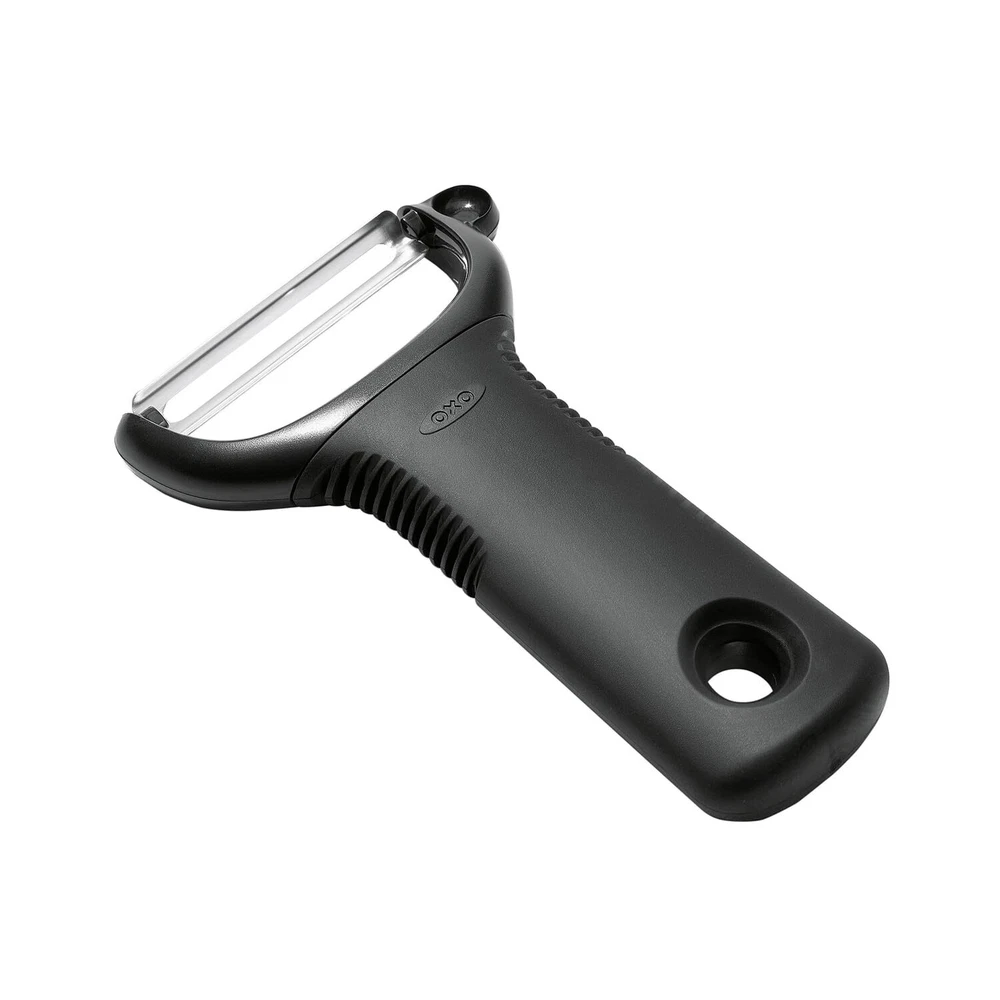 OXO Good Grips Y-Peeler Features: Sharp, hardened stainless steel blade easily peels cucumbers, apples and more Soft, comfortable, non-slip handle cushions hand during repetitive peeling motion Built-in potato eyer Removable cover protects blade Details: Named for its shape, the Y Peeler features a sharp, stainless steel blade that glides through even the toughest fruit and vegetable skins with ease. The soft, comfortable handle cushions your hand as you peel, and is non-slip, even when your hands are wet. Features: Sharp, hardened stainless steel blade easily peels cucumbers, apples and more Soft, comfortable, non-slip handle cushions hand during repetitive peeling motion Built-in potato eyer Removable cover protects blade Details: Named for its shape, the Y Peeler features a sharp, stainless steel blade that glides through even the toughest fruit and vegetable skins with ease. The soft, comfortable handle cushions your hand as you peel, and is non-slip, even when your hands are wet. eBay integration by