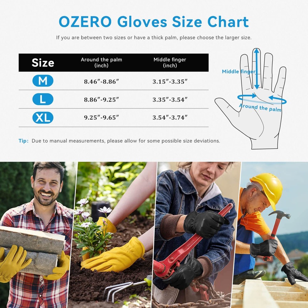 OZERO Flex Grip Leather Work Gloves Stretchable Wrist Tough Cowhide Working Glove 1 Pair (Gold, X-Large) 100% Genuine grain cowhide, Shrink Resistant and Flexible - It is generally known that cowhide is the best leather for abrasion-resistant work gloves. Made from carefully selected high-quality cow leather with thickness depth of 1.0mm-1.2mm which is not only thick and durable but also soft and flexible with moderate oil resistance, puncture resistance, tear resistance and cut resistance Reinforced palm and elastic wrists, Tough and Excellent Grip - These leather work gloves feature a reinforced palm patch that gives you superior grip and wear resistance. The elastic wrist design will keep dirt and debris out of the inside of the glove GUNN CUT and KEYSTONE THUMB, Durable and Anti-stiff - OZERO working gloves have superior durability and flexibility because the seams are set away from the palm. Less stress on the seams along with our keystone thumb design allows our gloves to last a long time while giving your hands more dexterity and freedom of movement Inside of cowhide leather - No lining necessary for these leather working gloves because the material is naturally non-irritant, breathable, sweat-absorbent, and comfortable on your hands Perfect fit for Men and Women - Choose from M, L, XL for a perfect fit. Measure your hand circumference to find the right size on the image diagram. These work gloves are suitable for heavy duty work, wood working, engineering, construction, garden, farm OZERO takes pride in producing the high-quality work gloves that you will love to wear while working with your hands. SUPERIOR RAW MATERIAL The high-quality leather raw material is imported from rural France and Italy, These places are known for good leather as a result of the appropriate climate and advanced feeding method for the animals all this contribute to why the gloves are soft and exquisite naturally. CLASSIC STYLE, MULTI - APPLICATIONS These gloves will come in handy for industry, wood cutting, timber processing, gardening, yard work, fencing, landscaping, carpentry, lumber, stonework, construction, motorcycle riding, heavy truck driver, demolition, warehouse, ranching, farming, hunting, machinery and so on it is a perfect tool for all type of work. Choose the perfect fit by measuring your hand circumference. Measure your dominant hand with a tape around the widest part of your palm where the thumb starts at the palm, not including the thumb. If you are between sizes or have a thick palm, choose the larger size. Medium: 8.66in (220mm) circumference Large: 9.06in (230mm) circumference X-Large: 9.45in (240mm) circumference 100% SATISFACTION GUARANTEED We offer a 100% satisfaction guarantee. If the gloves are defective or damaged within 90 days, we will replace it for you or provide a full so you can feel confident purchasing with OZERO. Shipping We offer FREE shipping on all orders! We ship within Three business days of payment, usually sooner. We use a selection of shipping services such as UPS, FedEx, USPS etc. We only ship to the lower 48 states, no APO/FPO addresses or PO Boxes allowed. Local pickups and combined shipping options are not provided at this time. Return You can return a product for up to 30 days from the date you purchased it. Any product you return must be in the same condition you received it and in the original packaging. Please keep the receipt. Payment We accept payment by any of the following methods: PayPal Please pay as soon as possible after winning an auction, as that will allow us to post your item to you sooner! Feedback Customer satisfaction is very important to us. If you have any problem with your order, please contact us and we will do our best to make you satisfied. Contact Us If you have any queries, please contact us via ebay. We usually respond within 24 hours on weekdays. Please visit our eBay store to check out other items for sale! Thank you for shopping at our store.