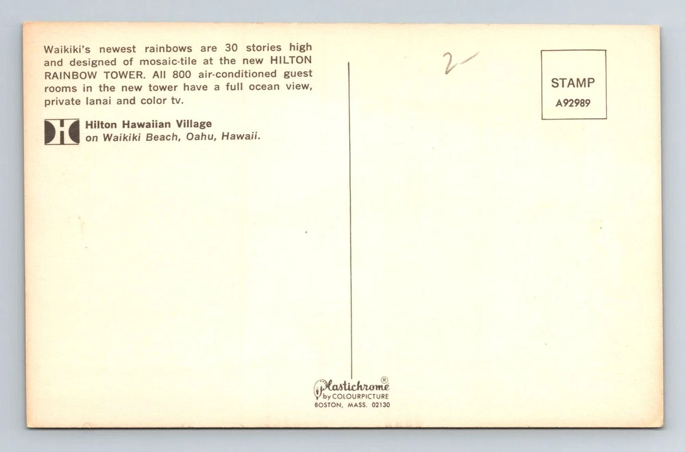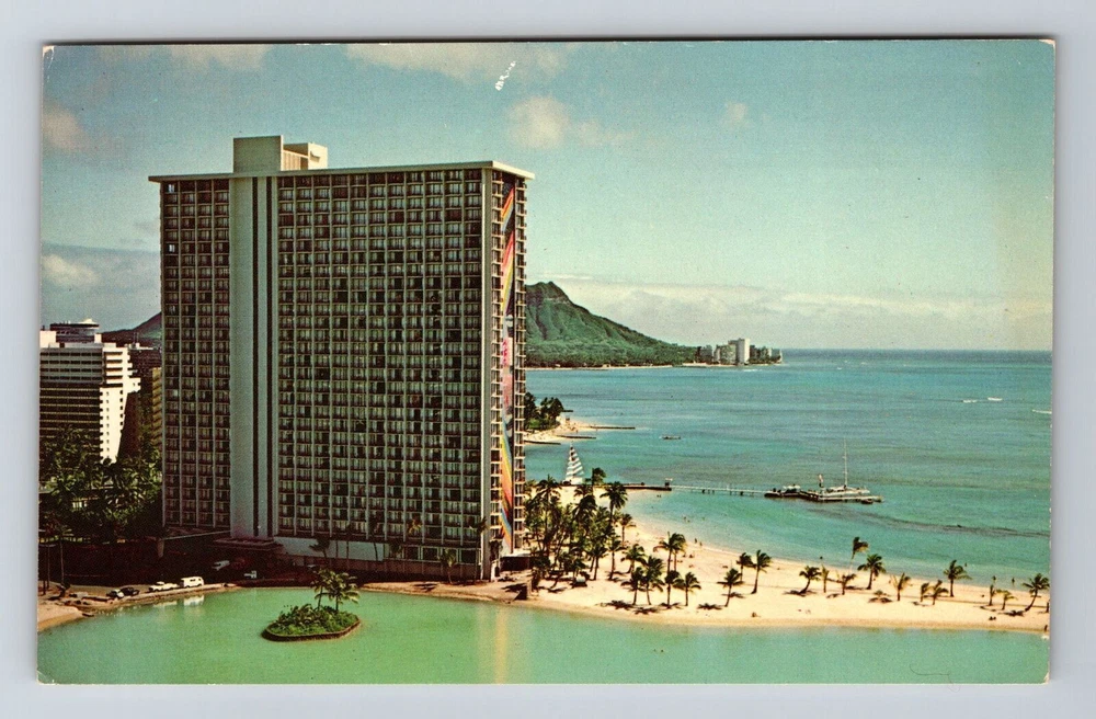 Oahu HI-Hawaii, Hilton Hawaiian Village, Waikiki Beach Vintage Postcard