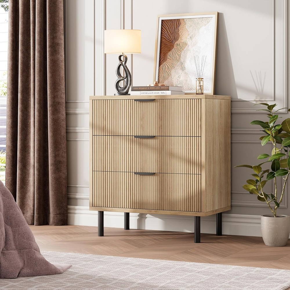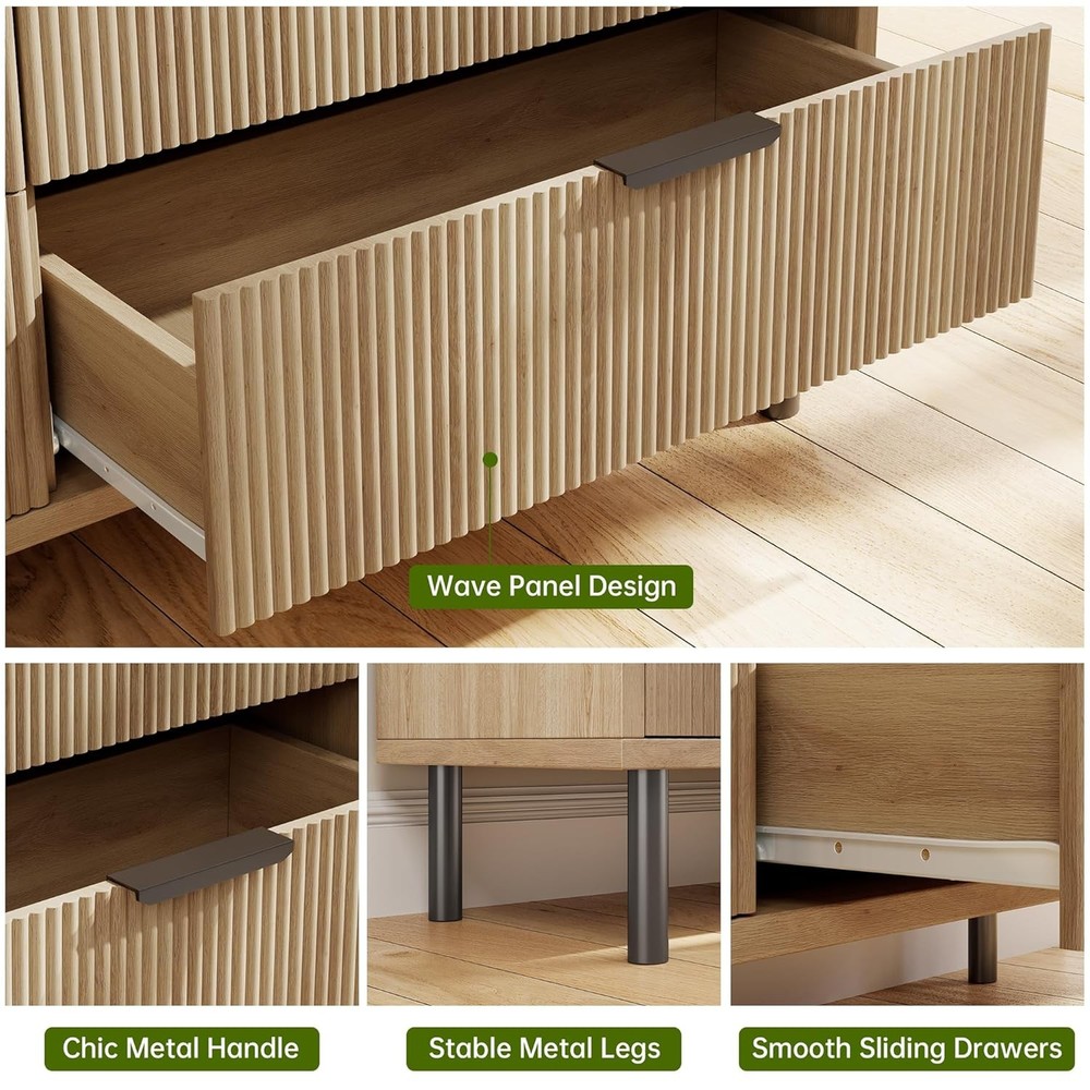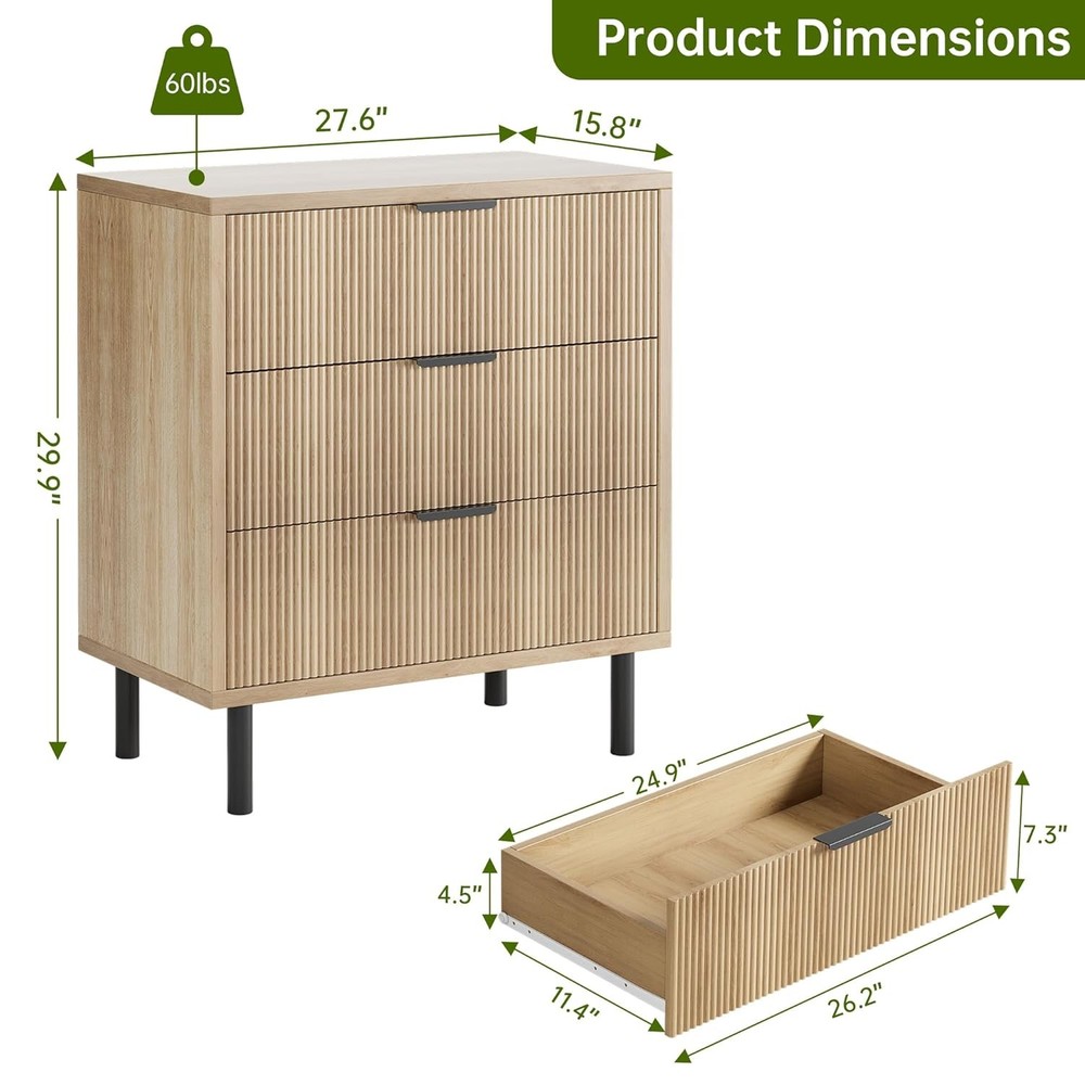 Oak Fluted 3 Drawers Dresser Wood Chest of Drawer Modern Storage Chest of Drawer About this item Timeless Elegance Meets Modern Chic: This stunning white dresser features wavy fluted panels that enhance texture and visual depth, making it more than just a simple 3-drawer dresser-it's a work of art that seamlessly blends beauty and practicality. With its crisp white finish and sleek black handles, this contemporary dresser adds a personalized touch to any space, making it a standout piece in your home Stable, Durable, and Textured: Crafted from high-quality engineered wood, this dresser boasts a fluted panel made with advanced blister molding technology, providing an exquisite matte texture. The melamine veneer top ensures durability, water resistance, and effortless maintenance. Its stability is reinforced by bold, solid metal legs, guaranteeing a sturdy piece of furniture that will last for years Versatile, Stylish Dresser: This wide chest of drawers offers ample storage with 3 spacious sliding drawers, perfect for organizing clothes, socks, cosmetics, and other personal items. The generous top surface is ideal for displaying decorations, photos, mirrors, plants, or lamps, keeping your space tidy and clutter-free Versatile Dresser for Any Room: This fluted dresser is an adaptable storage solution that fits seamlessly into any room of your home. Whether used as a bedroom dresser, a stylish addition to living rooms, hallways, entryways, or even kids' rooms, it serves as both a functional and attractive storage piece. It can even function as a coffee corner, enhancing your decor while providing practical storage Easy Assembly: Designed for hassle-free setup, this large dresser for the bedroom includes clear instructions, labeled parts, and necessary tools. With precisely drilled holes, assembly is quick and straightforward, allowing you to spend more time enjoying your new 3-drawer wooden dresser. WAVE FLUTED PANEL STYLE COLLECTION Spacious Storage Wave Nightstand with 3 Drawers Perfect for bedrooms, walk-in closets, nurseries, living rooms, or entryways, and it can also provide a display area for small lamps, electronics, picture frames, and more Each drawer can hold: 30-40 Books or 5-10 Sound or 10-20 Toys 10-20 Shirts or 10-15 Pants or 40-50 Socks 30-40 Diaper or 30-40 Scarf or 20-30 Slippers Wave Fluted Panel The distinctive waveform fluted panel enhances the texture and spatial presence of the nightstand Spacious Tabletop The spacious tabletop provides plenty of room for photo frames, potted plants, and other items. Metal Support Legs Sturdy materials ensure stability anddurability, while rubber feet protect your floor from scratches Wide Metal Handle Provides a comfortable grip for everyday use while adding a distinctive aesthetic touch to the table Anti-tipping Device The wood dresser includes an anti-tipping device for added safety, especially in homes with children MORE DETAILS Smooth Drawer Slides Featuring metal slides with enhanced load-bearing capacity, this design is skillfully crafted for smooth in-and-out operation. Richly Textured Natural Grain The rustic, handcrafted wooden planks showcase a richly textured natural grain that adds warm, inviting character to any space. Is the tabletop waterproof? Yes.You no longer have to worry about spilling coffee or drinks on the table. What is this 3 drawers dresser made of? MDF, premium compressed wood and metal. How long does it take to assemble? 30 minutes Payment Delivery details Terms of sales About us Contact us Payment We accept Payoneer only. All major credit cards are accepted through secure payment processor PayPal. Payment must be received within 7 business days of auction closing. If you have bought multiple items from me, you can send me one payment for all the items instead of paying for them individually. When you click the Pay Now button, eBay will automatically determine if there are other items you have won or purchased from me and will combine them for your review. NOTE: Import duties, taxes and chargers are not included in the item price or shipping charges. These charges are the buyer's responsibility. Please check with your country's customs office to determine what these additional costs will be prior to bidding buying. Delivery details 1. We will delivery out at the handing time when we receive the payment. 2. The delivery time is 3-5 business days to US by usually time.The parcel maybe delay 1-2day of the weekend.Due to the bad weather,Holidays,Hot Season ect.the parcel maybe delay,If you have any problems,mssage us,we will try our best to solve it. 3. We ship to your eBay address. Please make sure your eBay address is correct before you pay. 4. If you want to change the shipping address,message us before our send out. 5. We cannot deliver your order if your state is PR. Terms of sales 1. If you donot receive the items at the delivery time,the parcel has broken/missing,Please message us before you open case/return,we will try our best to solve it. 2. We offer a 30 day return policy from checkout winning date. 3. An RMA number is required for all returns. Message us for return instructions. Items Returned without a RMA number will not be processed. 4. Items defective upon receipt must be packaged in their retail packaging as if new and returned with a detailed description of the problem. 5. Return shipping fees are not refundable. We reserve the right to decline any returns if the above guidelines are not followed. About us If you are not satisfied with the item for any reason, please do not quick to leave negative/neutral feedback even open request and case without any communication with us. We devote ourselves making EVERY CUSTOMER in Satisfactory and resolve any problem. Thank you for your understanding and recognition,we are always leave positive feedback to all our customers. Contact us All replies will be sent to your email box, if you do not get response within 24 hours (Sat. & Sun. excluded) please chec