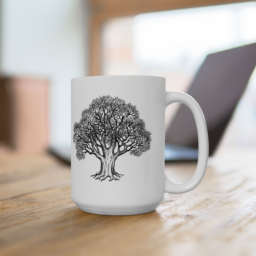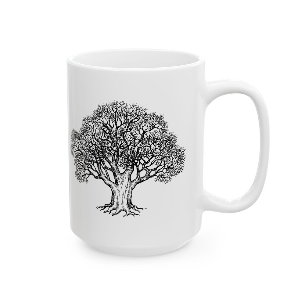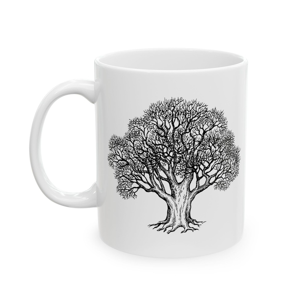 This ceramic mug features an oak tree drawing, giving off a natural and rustic vibe. Perfect for nature lovers and those who enjoy a calming atmosphere with their morning coffee or tea. Ideal for gifting on Earth Day, Arbor Day, or to anyone who appreciates the beauty of trees. Product features - Made from glossy ceramic with vibrant colors - Available in 11oz and 15oz sizes - Safe for microwave and dishwasher use - Durable white ceramic for long-lasting prints - Lead and BPA-free for daily use Care instructions - Clean in dishwasher or wash by hand with warm water and dish soap EU representative : HONSON VENTURES LIMITED, 3, Gnaftis House flat 102, Limassol, Mesa Geitonia, 4003, CY Product information : Generic brand, 2 year warranty in EU and Northern Ireland as per Directive 1999/44/EC Care instructions : Clean in dishwasher or wash by hand with warm water and dish soap