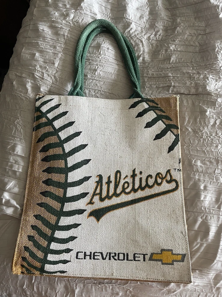 Oakland Athletics x Atléticos Chevrolet Burlap Tote Bag 3 PLAYER SIGNATURE