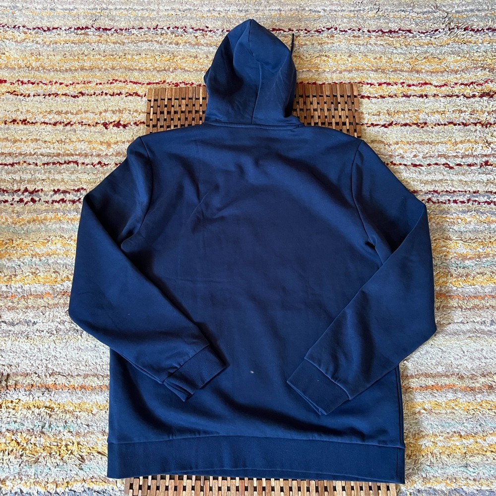 The Oakley Pullover Hoodie in Navy Blue is a stylish and comfortable option for men's activewear. Made from cotton fleece, this hoodie features a solid design with a logo accent, long sleeves, and a pullover closure. The regular fit and hooded design make it perfect for outdoor activities in the winter, fall, or spring. Machine washable and in size Large, this hoodie is a versatile addition to any man's wardrobe.