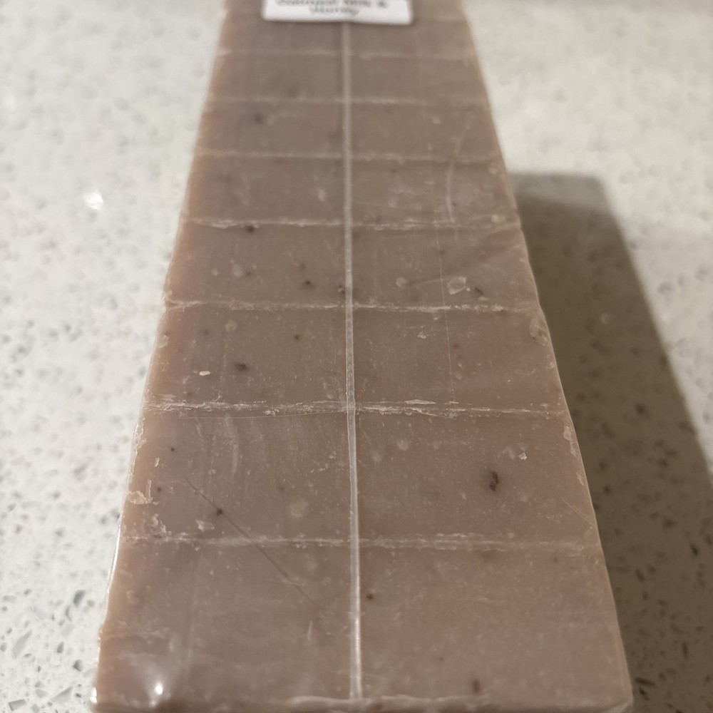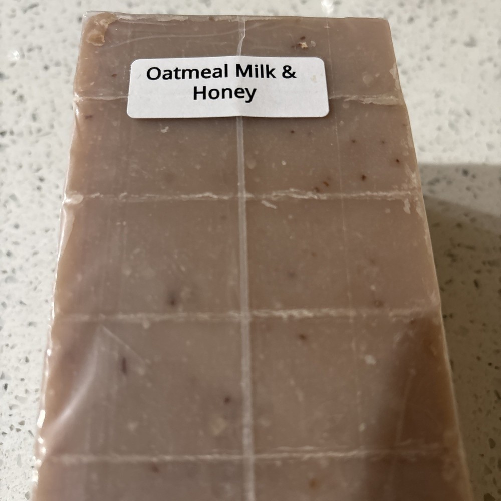 🌙 LUNA NATURAL SOAP Oatmeal Milk & Honey Soap Luxury handmade soap with a warm oatmeal, milk, and honey fragrance. Ground oatmeal helps gently exfoliate and cleanse the skin while leaving it feeling soft and nourished. ⸻ 🌿 Features • Handmade Soap • No Parabens • No Preservatives • No Lauryl Sulfate • Not Tested on Animals ⸻ Oatmeal Milk & Honey Handmade Soap Loaf – 9 Bars Beautiful handcrafted soap loaf made with nourishing oils and shea butter. Each loaf includes 9 individual soap bars with a warm oatmeal milk and honey fragrance and gentle exfoliation. Perfect for personal use, gifts ⸻ Details • Quantity: 9 Bars (1 Loaf) • Weight: Approx. 4–5 oz per bar • Handmade Product • Made in the USA ⸻ Ingredients Saponified Oils of Sunflower, Palm, Coconut, and Olive, Shea Butter, Ground Oatmeal, Fragrance. ⸻ Warning Avoid contact with eyes and sensitive areas. Discontinue use if irritation occurs. Please check ingredients carefully if you have allergies or sensitive skin.