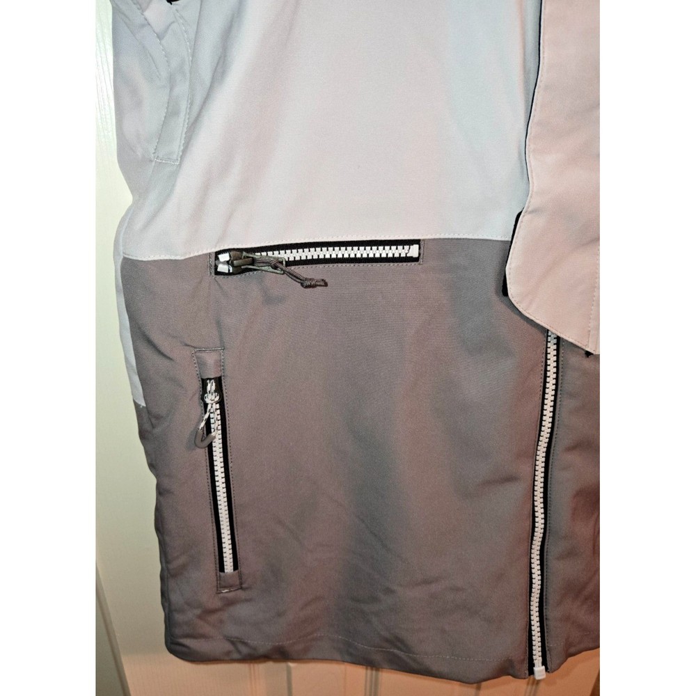 Obermeyer Axel Ski Jacket in Youth Large Moonstone is a durable, insulated ski jacket featuring 15K waterproofing and breathability, mapped insulation, a snap-away powder skirt, attached hood, and features like Control Zone Ventilation (CZV) and Extended Wear System (EWS) for comfort and longevity on the slopes. This particular model uses a 2-way stretch polyester fabric, includes a variety of pockets, and is made with some sustainable materials. Weather Protection: 15K waterproof and 15K breathable fabric with Skier Critical™ seam sealing to keep snow and moisture out. * Insulation: Mapped insulation provides warmth where it's needed most: 140g in the body, 120g in the sleeves, and 60g in the hood. * Comfort & Flexibility: Full-Motion™ articulation ensures ease of movement, while the fleece-lined collar and chin warmer add extra comfort. * Mountain Ready: Includes a snap-away, water-resistant powder skirt and adjustable cuffs with thumbhole inner cuffs to prevent snow from getting in. * Ventilation: Control Zone Ventilation (CZV) allows for breathability to regulate body temperature. * Sustainability: Features Repreve® fabric, which is made from recycled plastic bottles, and an Extended Wear System (EWS) to increase the jacket's lifespan. Pockets: Zippered handwarmer pockets, a chest pocket with a detachable goggle cloth, and interior pockets for electronics and goggles. MSRP: $199.50