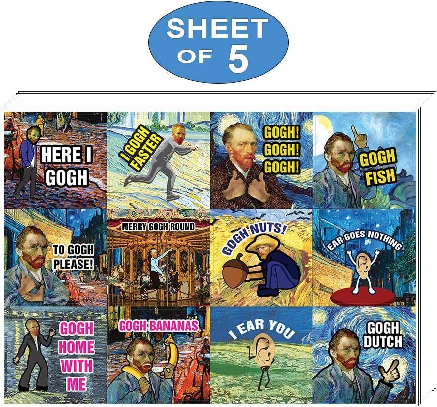 Creanoso Funny Stickers - Obsessed with Van Gogh Stickers Series 5 (5-Set) 5 UNIQUE DESIGNS INSPIRING STICKERS FOR YOUR DIY PERSONALIZED DECORATIONS - WIDE APPLICATION ON ANY FLAT SURFACE - can be used on any flat surface as decoration and personalization of your belongings. These awesome stickers can be stuck on a laptop, notebook, water bottle, pencil box, lunch box, suitcase, hard hat & helmet, decal artworks , phone cover, bikes, bicycles, and many more. MADE WITH DURABLE AND WATERPROOF MATERIALS - There is a lamination or coating to make the stickers high water resistant, and WILL NOT not fade from the water. The stickers can stick it anywhere you like, and it sticks there and lasts a long time. A LOT OF STICKERS FOR LOWER PRICE - Each sheet with 12 individual 2.1” x 2.0” square stickers. There are 5 sheets , with a total of 60 pcs of stickers. GREAT STOCKING STUFFERS , TEACHING SUPPLEMENTARY MATERIALS, AND GIVEAWAY - Great stocking stuffers gifts for Boy, Girls, Teens, Kids. A perfect design to give during classroom school activities, home schooling, birthdays, anniversaries, family day, and any other special occasions. Funny Stickers - Obsessed with Van Gogh Stickers Series 5 (5-Set) COLORFUL AND COLLECTION OF TEXT STICKERS • Well designed. • Very encouraging. • Self-adhesive. Funny Stickers - Obsessed with Van Gogh Stickers Series 5 (5-Set) are super fun to collect; you can't have just one! That's why you will find a selection of stickers right here. Each package comes with different stickers in a variety of designs. Stick them here, stick them there, stick them everywhere! Everyone will love these self-adhesive stickers. These colorful stickers are perfect for any adults and these come with very inspiring messages and bright pictures. A fun, inexpensive way to add a decorative, notes, and stationery. Delight yourself with uplifting messages designs that are very encouraging. Funny Stickers - Obsessed with Van Gogh Stickers Series 5 (5-Set) perfect for giveaways, behavior incentives, prizes! These stickers are acid-free, nontoxic, and safe for use on photos. This product comes with a 60 days money back guarantee. You can return them to us for a full refund.