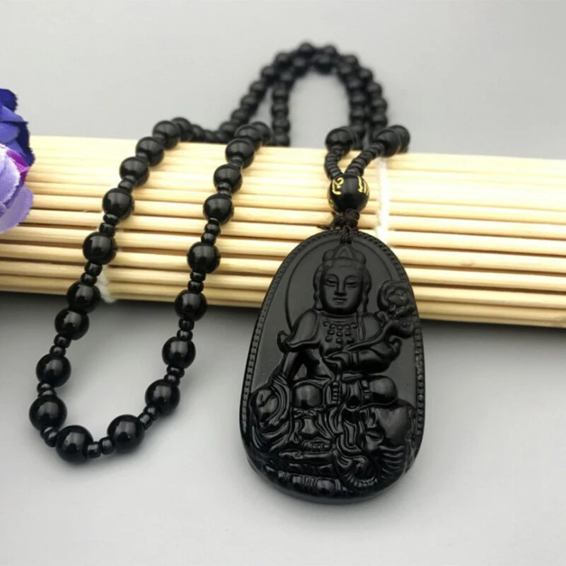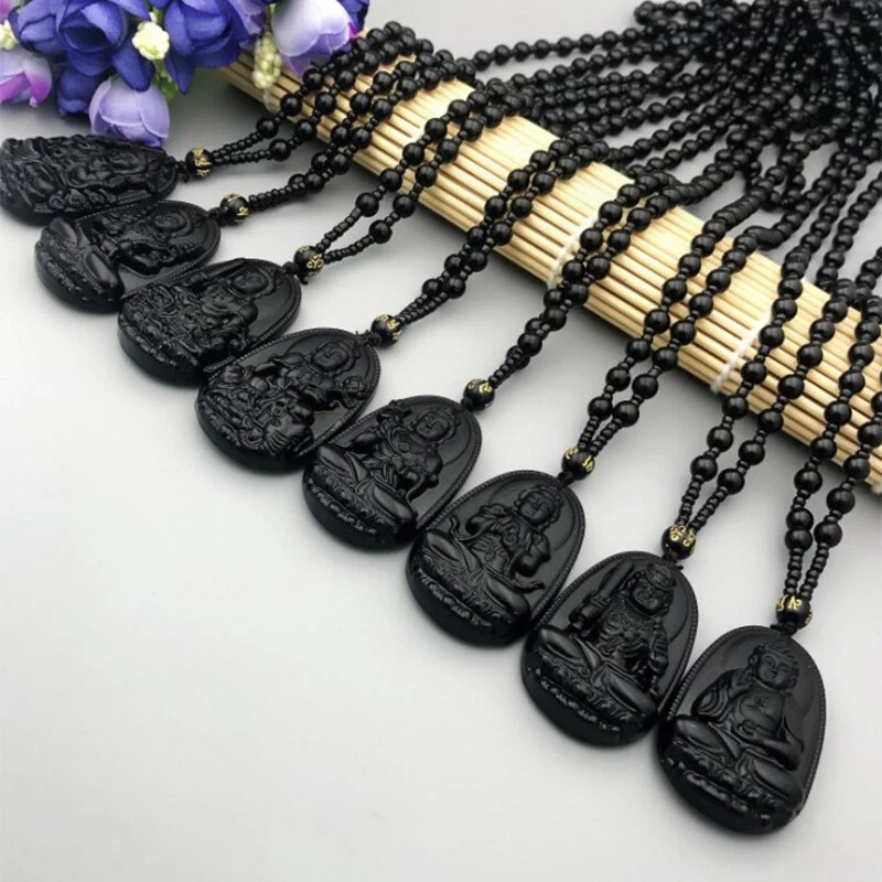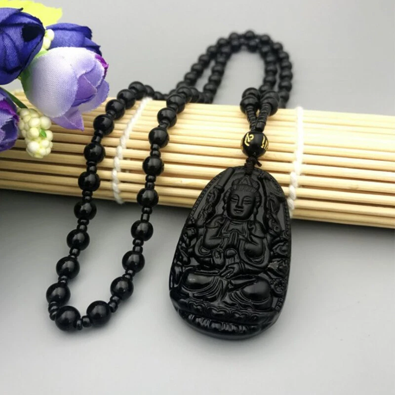 1. Unique Design: This product features Obsidian Stone Buddha Beads, intricately carved to resemble a powerful Buddhism Bodhisattva amulet, offering users a piece of jewelry that stands out from the crowd. 2. Protective Charm: With its unique design featuring a powerful Buddhism Bodhisattva amulet, this necklace acts as a protective talisman, believed to ward off bad luck and misfortune. 3. Unisex Jewelry: This necklace is perfect for both women and men. Its versatile and simple design brings an elegant touch to any outfit, making it an impeccable choice for anyone and any occasion. 4. High-Quality Material: The necklace is made of high-quality obsidian stone, imitating the look of luxurious jade. Great workmanship ensures the necklace is not easy to break, highlighting its durability and longevity. 5. Great as Gift: For those who appreciate Buddhism culture or enjoy unique jewelry, this Obsidian Stone Buddha Beads Chain Necklace would make an excellent gift. Whether for a birthday, anniversary, or just because, it's a thoughtful present that's sure to be appreciated.
