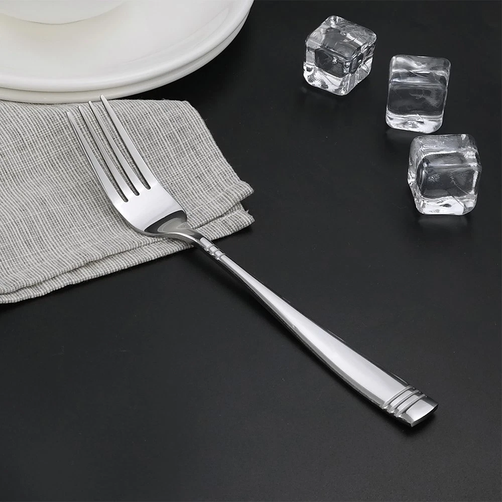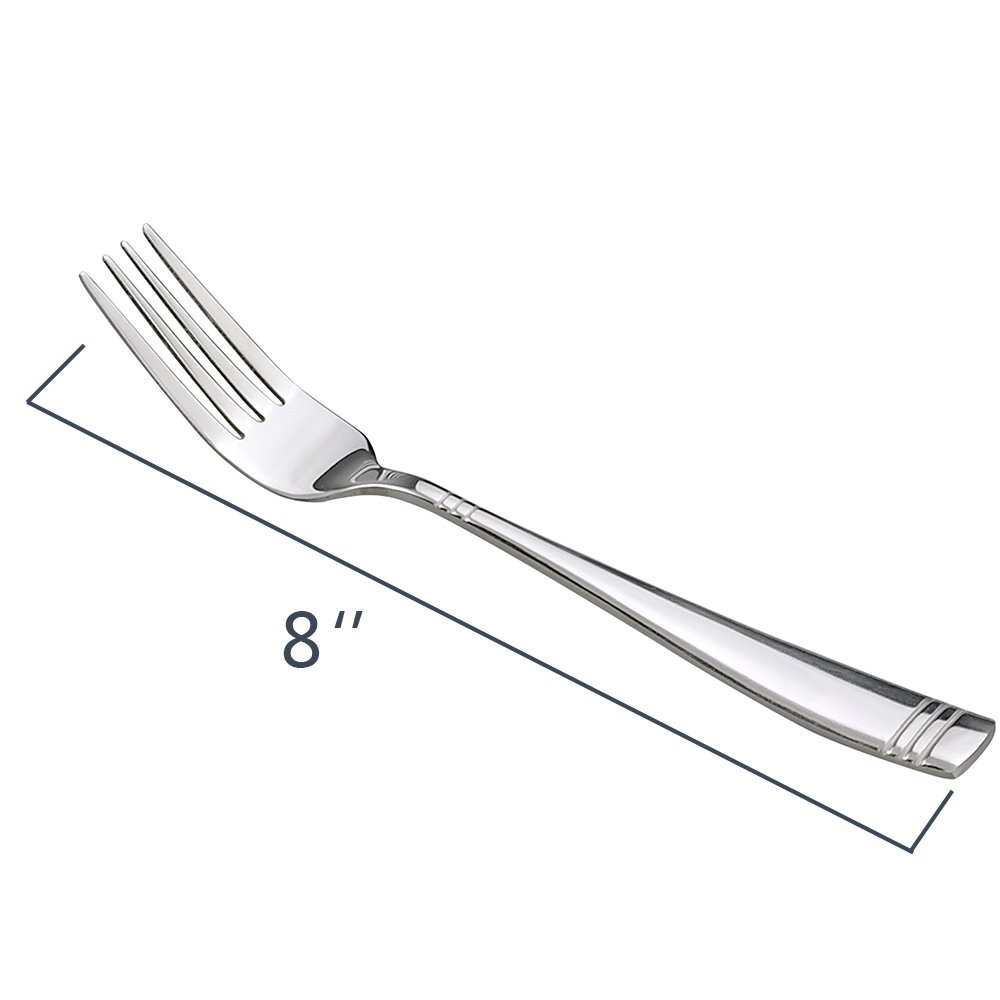 12-piece stainless steel dinner fork. Total length: 8" 12-piece stainless steel dinner fork Total length: 8" Stylish handle design Mirror polish Simple and elegant surface design that makes this flatware suitable for official or everyday meals