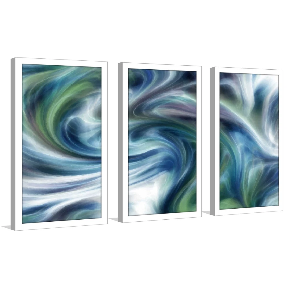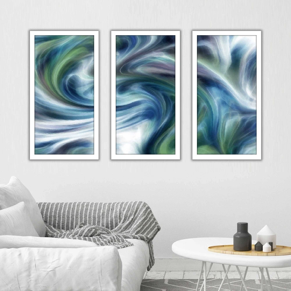 This Digital Photo Print Art Set is created whereby an image is digitally printed directly onto acrylic using a high-speed flatbed printer. The Artwork is produced with excellent print quality with a 6-color plus white UV-curable inkjet system. This artwork has been reproduced from the artists' original piece with written permission.This product will be custom built for you. Please allow 10 business days for the product to leave our warehouse.100% Proudly Made in North America & Arrives Ready-to-HangPlease note this is a digital print on acrylic with no embellishmentsCare: Wipe with dry cloth onlyFrame: 1" White40.5" x 25.5" (13.5" W x 25.5" H each panel)52.5" x 33.5" (17.5" W x 33.5" H each panel) Free Shipping Over $49.99* Details "Ocean Movement" Framed Acrylic Wall Art Set of 3 Product Description: This Digital Photo Print Art Set is created whereby an image is digitally printed directly onto acrylic using a high-speed flatbed printer. The Artwork is produced with excellent print quality with a 6-color plus white UV-curable inkjet system. This artwork has been reproduced from the artists' original piece with written permission. This product will be custom built for you. Please allow 10 business days for the product to leave our warehouse. 100% Proudly Made in North America & Arrives Ready-to-Hang Please note this is a digital print on acrylic with no embellishments CareWipe with dry cloth only Frame1" White 40.5" x 25.5" (13.5" W x 25.5" H each panel) 52.5" x 33.5" (17.5" W x 33.5" H each panel)