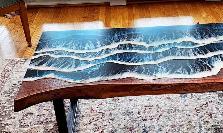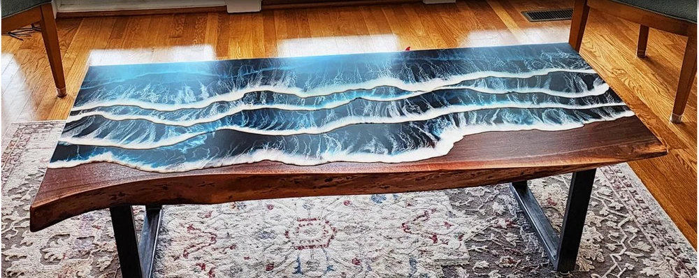Ocean Resin Epoxy Table Blue Epoxy Dining Table, Live Edge Ocean Epoxy Table