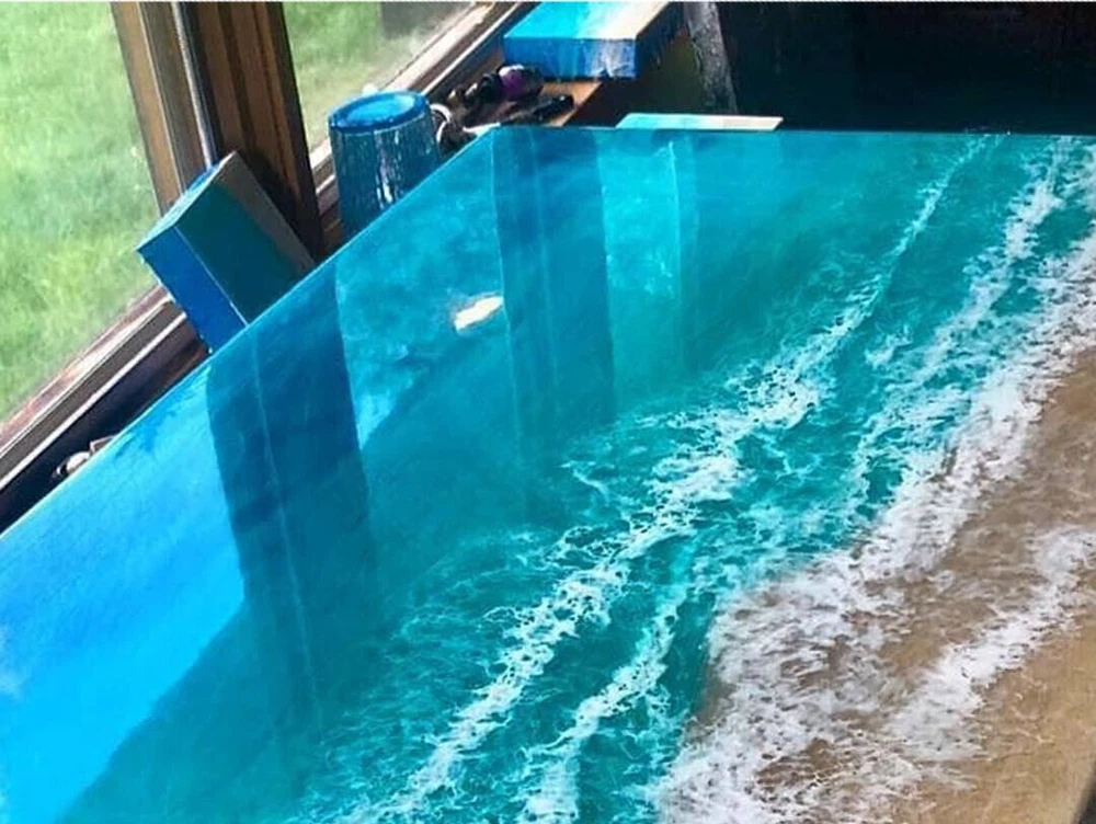 Ocean River Epoxy Slab, Dining Epoxy Table Top, Handmade Furniture Decors