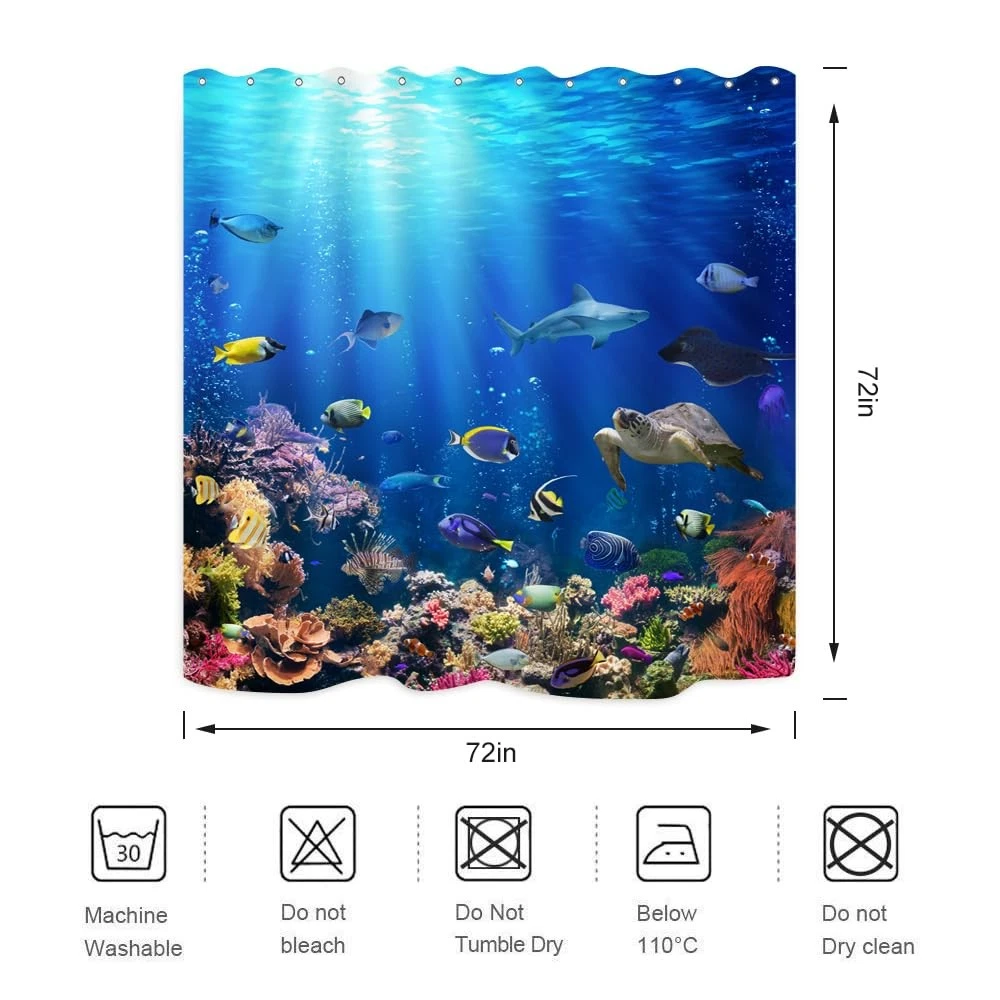 Ocean Shower Curtain Under The Sea Shower Curtain Blue Ocean Fish Shower Curt... FEATURE:Rust Proof Metal Grommets,Vibrant 3D High Definition Digital Printing Patterns,Excellent Waterproof Polyester Fabric,No smell,No fading,Environmentally Friendly. MATERIAL:High Quality Polyester Fabric,Waterproof & Smooth Fabric,Prevent Water From Splashing Effectively,No Sticking Close to the Skin while bathing,Quick-drying. PATTERN DESIGN:Ocean Underwater World Shower Curtain, Decoration Artistic Design adds a distinctive look to your bathroom,make you have a different bath feeling. STANDARD SIZE:Dimensions measure 72 x 72 Inches to fit standard bathtub showers. Ensure to provide a more comfortable and private space for you. PACKAGE INCLUDES:1 X Shower Curtain,12 X Plastic Hooks,No Extra Liner Needed,Easy To Install,Machine Washable,Firm and Durable to last for years. This shower curtain set is an artistic Design of Decoration 3D digital printing shower curtain.It has the characteristic of bright color.It is made of waterproof polyester fabric,no need liner. SPECIFICATION: Material: 100% Polyester Fabric; Size: 72"L x 72"W; Shipping Weight: 0.97 lb; Package:1 pc Shower Curtain,12 pcs Plastic Hooks. FEATURES: 1.The grommets are made of high quality non-rusting metal. It is firm and durable.The diameter of the ring round hole is 1cm(0.39 inch),so It can work with any type of hook. 2.This shower curtain is made of high polymer polyester fabric, Excellent waterproof, the smooth fabric prevents the shower curtain from sticking close to the skin while bathing, enjoy the bath. 3.Using 3D digital printing technology and Environmentally friendly and safe cloth. So our shower curtain has the characteristic of no smell, no fading and bright color. CARE INSTRUCTIONS : Machine washable, Wash it in cold water, Ironing with low temperature. Do not bleach, do not tumble dry, do not dry clean. NOTICE: All dimensions are measured manually with deviation (ranged) at 1-3mm. Item may be a little different from the picture due to the lighting and your monitor’s display. Shipping We offer FREE shipping on all orders! We ship within Three business days of payment, usually sooner. We use a selection of shipping services such as UPS, FedEx, USPS etc. We only ship to the lower 48 states, no APO/FPO addresses or PO Boxes allowed. Local pickups and combined shipping options are not provided at this time. Return You can return a product for up to 30 days from the date you purchased it. Any product you return must be in the same condition you received it and in the original packaging. Please keep the receipt. Payment We accept payment by any of the following methods: PayPal Please pay as soon as possible after winning an auction, as that will allow us to post your item to you sooner! Feedback Customer satisfaction is very important to us. If you have any problem with your order, please contact us and we will do our best to make you satisfied. Contact Us If you have any queries, please contact us via ebay. We usually respond within 24 hours on weekdays. Please visit our eBay store to check out other items for sale! Thank you for shopping at our store.