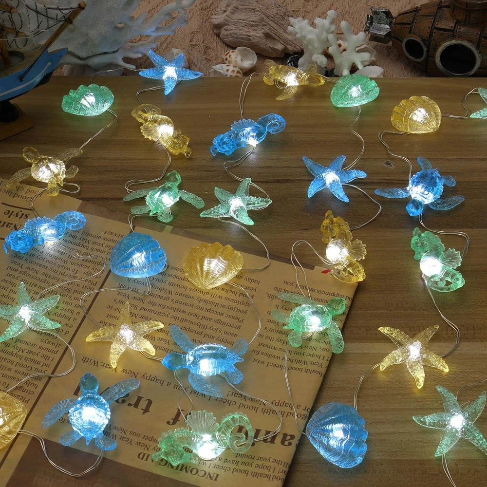 Store New Arrivals Add to Favorite View Feedback Contact Ocean Themed Decorative Lights String of Marine Life Fairy String Lights Coastal Decor 10Ft 30 Leds Battery Operated with Remote Control for Beach Bedroom Decoration Description Item model number SEABA-2023-HXT Light Source Type LED Style Sealife Power Source Battery Powered Number of Light Sources 30 Control Method Remote Theme Coastal Decor Style Number SEABA-2023-HXT Controller Type Remote Control Material Copper Additional Features Water Resistant Package Dimensions 5.28 x 3.46 x 2.6 inches; 7.05 ounces Indoor/Outdoor Usage Outdoor Material Type Copper Light Color Multicolor Water Resistance Level Water Resistant Connectivity Technology USB Special Feature Water Resistant Color Multicolor Wattage 5 watts Indoor Outdoor Usage Outdoor Included Components water resistant battery box Style Name Sealife 【Let The Beauty of Coral Reefs Creatures Light Up Your Life】Turtles, seahorses, starfish, and giant clam. Each icon is carefully designed with rich details. Each one is a work of art with our deepest love to ocean. 【Recognizable and Multiple Usage Scenarios】This copper wire lamp Star is 1.5x1 inch and it is fully light up. People can tell what they are from a distance. And the light it emits is more even and bright. They are the color of ocean water. This is mermaid will choose for her bedroom. Anyone who love ocean and beach will love this light. 【Better Quality and Safe Décor for Everyone】We use 0.45 diameter copper wire compares to 0.38 diameter of old version products, which make our item more durable. This wire will never go hot, it is also water resistant and can even work in very humid environment for a period (Keep USB and battery pack dry). Even if the lamp wire is damaged or broken, there will be no leakage. It can work safely near children and pets. 【Remote Control Provides Timer and Flicker Function】6 Hrs build-in timer provides automatic shut off (6 hours on and 18 hours off and 6 hours on again), plus brightness dimmer and flicker function, easy to use and save energy. The remote also offer different flicker mode and speed. You can easily control the lights even when it is out of your reach. 【Battery Operated】 The water resistant battery box allows you to use this product flexibly anywhere, we recommend using rechargeable batteries. Islands and beaches are always my first choice for vacation. The endless blue sea level always calms my heart. I also like free diving. Below sea level is like another world, which makes me forget all the unhappiness and boredom in life. Countless kinds of fish and turtles are like angels in this heavenly world. For some reason, my young son is also obsessed with the world. He loves all the creatures in the ocean for no reason. Therefore, it has become a great pleasure for me to observe the creatures in this world and bring their cutest forms to life. I started from small sea life and poured all my love for this blue world. I hope to share this feeling with you through my design. ABOUT US We offer the best prices around on high quality products. Our E-store includes media such as books, movies, music and games while offering electronics, toys, sporting apparel, clothing, tools, general home, garden items and more. SHIPPING We are always working hard to ensure your package arrives as soon as possible. Please understand that some factors like weather, high postal traffic, and the performance of shipping companies are outside of our control. We offer free shipping to the lower 48 states and ship within 2 business days of payment, usually sooner. We do not accept P.O. Boxes. Please provide a physical address. For shipping outside of the continental USA, we only use eBay's Global Shipping Program.The item is shipped to KY and then sent to the rest of the world. International customers are responsible for all duties and taxes. Continue to check out in order to calculate costs for shipping the item to your country. Messages regarding eBay's Global Shipping Program MUST be directed at eBay EXCLUSIVELY. RETURNS We offer a 30-Day Return Policy on items which you are not completely satisfied with. You have the option for a full-refund or an exchange of the item. No returns are available on items shipped outside of the USA. PAYMENT We accept PayPal. CONTACT US This page content is yet to come Please ad us to your favorite seller and visit again later Thank You CUSTOMER SATISFACTION We try our very best to make sure every customer is completely satisfied. If there's a problem, message us! We're happy to help. WE ACCEPT Copyright © 2021 AutoDS. | All Rights Reserved