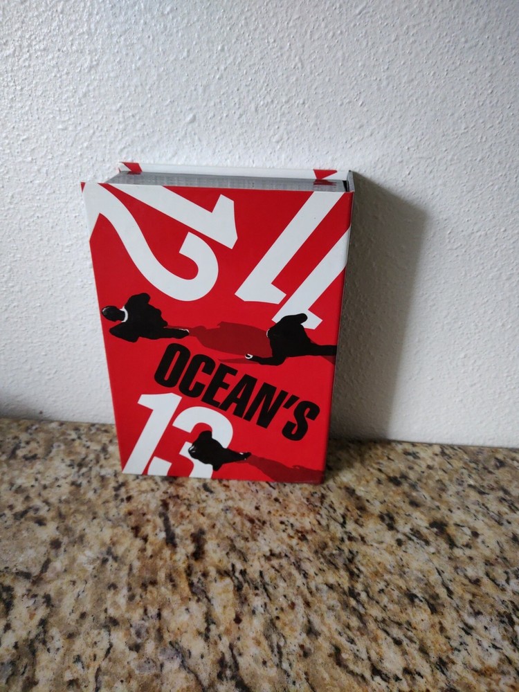 Oceans Eleven + Twelve + Thirteen Collection Box Set (DVD). Very good condition! Ocean's Eleven is a 2001 American heist comedy film directed by Steven Soderbergh and written by Ted Griffin. The first installment of the Ocean's franchise, it is a remake of the 1960 Rat Pack film of the same name. Ocean's Eleven features an ensemble cast, including George Clooney, Brad Pitt, Matt Damon, Don Cheadle, Andy García, Bernie Mac and Julia Roberts. The story follows friends Danny Ocean (Clooney) and Rusty Ryan (Pitt), who plan a heist of $160 million from casino owner Terry Benedict (García), the lover of Ocean's ex-wife Tess (Roberts). Upon release, the film was a success at the box office and with critics; it was the fifth highest-grossing film of 2001, with a worldwide gross of $450 million. Soderbergh directed two sequels, Ocean's Twelve in 2004 and Ocean's Thirteen in 2007, which make up the Ocean's Trilogy. Ocean's 8, a spin-off with an all-female lead cast, was released in 2018. Ocean's Twelve is a 2004 American heist comedy film directed by Steven Soderbergh. The second installment of the Ocean's franchise and the sequel to Ocean's Eleven (2001), the film stars an ensemble cast consisting of George Clooney, Brad Pitt, Matt Damon, Catherine Zeta-Jones, Andy García, Julia Roberts, Don Cheadle, and Bernie Mac. The film was released in the United States on December 10, 2004, and received generally mixed reviews from critics. It was a financial success, grossing $362 million and becoming the tenth-highest-grossing film of 2004. It is followed by Ocean's Thirteen (2007). Ocean's Thirteen (also written as Ocean's 13 ) is a 2007 American heist comedy film directed by Steven Soderbergh. It is the third installment in the Ocean's franchise, the sequel to Ocean's Twelve (2004), and the final film in the Ocean's Trilogy. The entire male cast reprised their roles from the previous installments, with Al Pacino and Ellen Barkin joining the cast, but both Julia Roberts and Catherine Zeta-Jones didn't return. Filming began in July 2006 in Las Vegas and Los Angeles, based on a script by Brian Koppelman and David Levien. The film was screened as an Out of Competition presentation at the 2007 Cannes Film Festival, and was released on June 8, 2007 in the United States. The film was well-received and grossed $311 million worldwide. Shipped with USPS Media Mail.