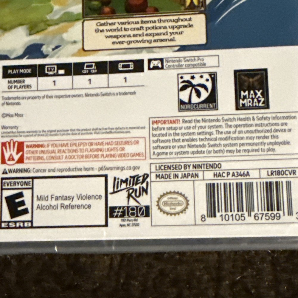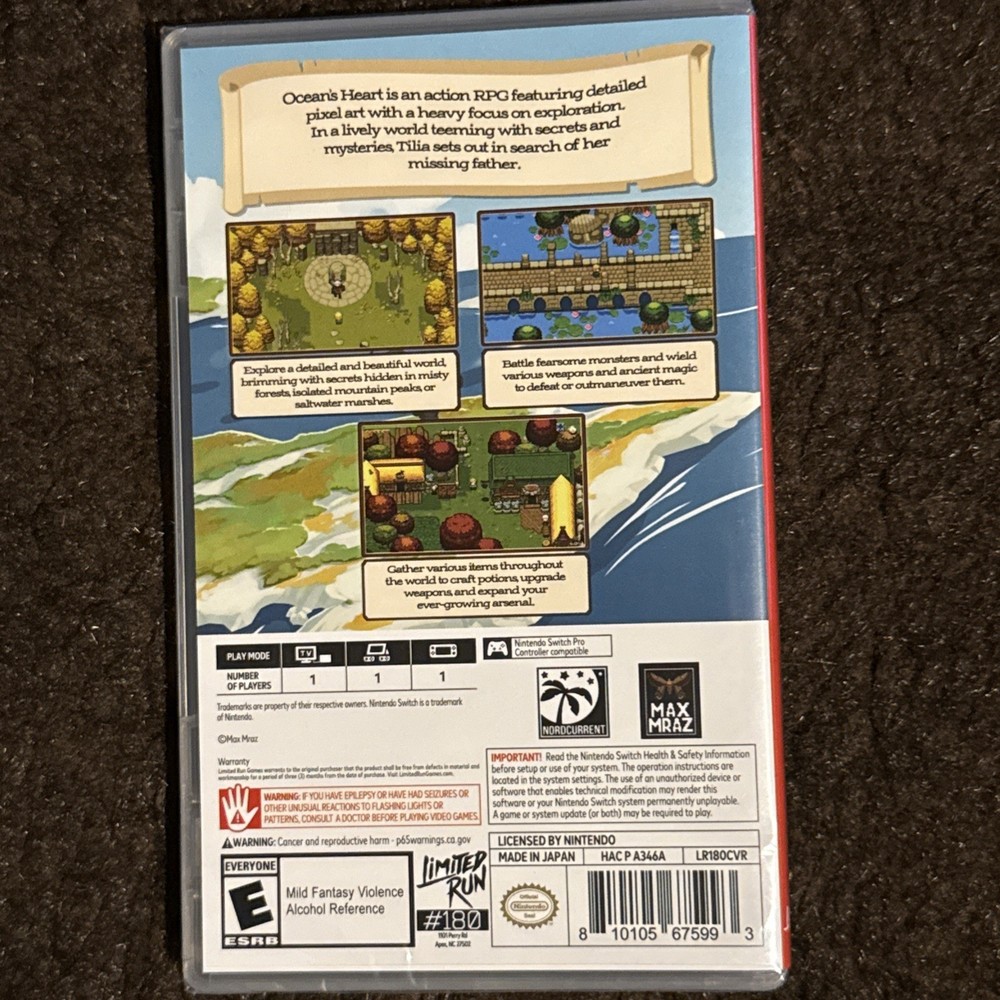 "Ocean's Heart" is a limited run role-playing game for the Nintendo Switch platform, published by Limited Run Games. Set for release in 2023, the game is rated E for Everyone and boasts a unique storyline and gameplay experience. With a region-free code, this new and sealed game is sure to captivate fans of the genre with its immersive world and engaging storyline."