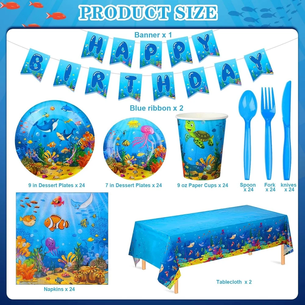 Ocean-themed Birthday Party Set for 24: 171 Pcs of Fun Tableware Essentials ‹ › ‹ › ‹ › ‹ › ‹ › ‹ › ‹ › ‹ › Ocean-themed Birthday Party Set for 24 Totaling 171 Pcs of Fun Tableware Essentials Set Includes: 24 pcs 9-inch plates 24 pcs 7-inch dessert plates 24 pcs 9oz paper cups 24 pcs sea life napkins 24 sets of blue knives, forks, and spoons 2 packs of ocean sea theme tablecloths Happy Birthday banner with 2 sets of blue ribbons Exquisite Design: Immerse your celebration in the depths of the ocean with our stunning tableware set! Each piece beautifully showcases underwater world creatures such as coral, whales, dolphins, turtles, and jellyfish, adorned in a dark blue palette that evokes the mysterious allure of the sea. This exquisite design is tailor-made for various ocean-themed parties, ensuring unforgettable memories for you and your guests! Reliable Material: Quality matters when it comes to celebrations! Our ocean birthday party tableware is composed of reliable paper, ensuring sturdy plates that won't buckle under pressure. The curling design of our paper cups makes them comfortable to use, while the disposable nature provides ultimate convenience. The waterproof and oil-proof sea tablecloths allow you to focus on the fun, not on the clean-up! Easy to Assemble: No one enjoys complicated decorations. Our under the sea party supplies are thoughtfully designed for easy assembly. The banner arrives with two ropes, allowing you to effortlessly string the letters together and adjust their spacing. Say goodbye to complex setups and hello to joyful gatherings! Wide Range of Uses: This ocean-themed party set isn’t just for birthdays! Our delightful plates and napkins save you time while decorating, and the sturdy, reusable birthday banner can be displayed for multiple events. Ideal for children’s birthday parties, baby beach celebrations, under-the-sea-themed events, and baby showers, your decorations will undoubtedly impress guests of all ages! Why Choose Our Ocean-themed Birthday Party Set? Transform your next celebration into an enchanting underwater adventure with this complete tableware set. With sufficient quantities to cater to 24 guests and an exquisite design that captures the beauty of the ocean, it's the perfect choice for hassle-free entertainment. Create lasting impressions and make your special day unforgettable! Shipping Free & Fast Shipping - We offer free shipping to most of the USA with a normal delivery time of 3-7 days. However, due to the current situation, additional delivery time (up to 3 weeks) may be required for some items. Alternative Carriers - We may use alternative carriers (e.g. USPS, FedEx, UPS, etc.) to ensure your package arrives safely and on time. Due to the use of multiple carriers, we are unable to provide a tracking number automatically. Handling Time - Orders are processed and shipped within 1-2 business days of receiving cleared payment. Shipping Restrictions - Shipping to Alaska, Hawaii, Puerto Rico, Guam, and other US territories may incur shipping charges or delivery restrictions. Please contact us before ordering, or your order can be refunded/cancelled. State Restrictions - There may be restrictions based on your state of purchase. For example, certain items may not be shipped to California due to state regulations. Contact for Tracking Updates - If you require tracking updates or have any concerns about the delivery of your order, please feel free to contact us, and we will be happy to assist you. Return 30-Day Hassle-Free Returns - We want you to be completely satisfied with your purchase. If you are not, you can return the item within 30 days of receiving it for a full refund or exchange. Easy Return Process - To start a return, simply contact us and we will provide you with a prepaid return shipping label and detailed instructions. Restocking Fee - There are no restocking fees for returns. However, the buyer is responsible for return shipping costs if the return is not due to a seller's error. Refund Processing Time - Refunds will be processed within 5 business days of receiving the returned item in its original condition. Payment We accept all major credit cards, PayPal, and Apple Pay for your convenience. Your payment information is secure and encrypted to ensure a safe and seamless transaction. Please complete your payment within 3 days of purchase to avoid any delays in shipping. Feedback Your feedback is extremely important to us. We strive to provide the best products and customer service possible. If you are satisfied with your purchase, please take a moment to leave us a positive review. If you have any concerns or issues with your order, please contact us before leaving negative feedback. We are committed to resolving any problems and ensuring your satisfaction. Contact Us If you have any questions or concerns, please feel free to reach out to our customer support team. You can contact us through the eBay messaging system. We are available Monday to Friday, 9:00 am to 5:00 pm EST, and we will do our best to respond to your inquiry within 24 hours. Thank you for supporting our small family business! UPC: Not Set Unit Quantity: 171 Character: Under the Sea Party Supplies Material: Paper Brand: Unbranded Type: Table Decoration Occasion: Birthday Character Family: Not Set Color: Blue Theme: Sea Department: Kids Production Technique: Not Set MPN: Not Set Product Line: Not Set Country/Region of Manufacture: Not Set Pattern: Marine Life Elements Style: Contemporary Origin: Not Set Age Level: Not Set Production Style: Not Set Unit Type: Unit Antique: Not Set Vintage: Not Set Personalize: Not Set