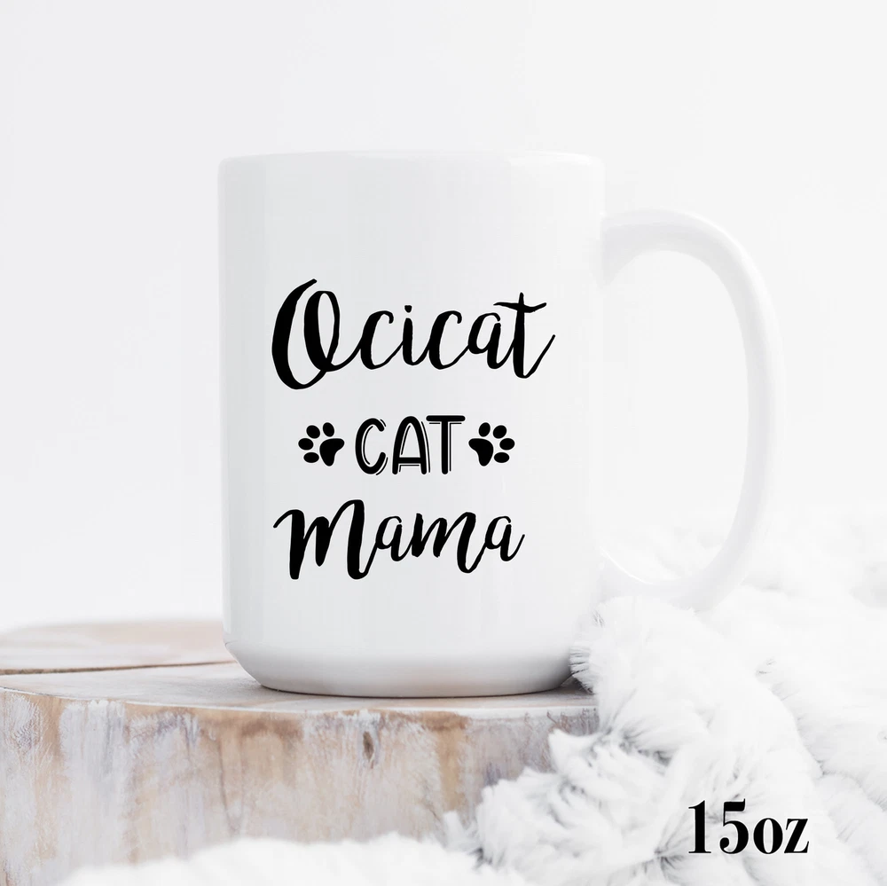 Ocicat Cat Mama Mug Ocicat Mug Ocicat Gift Ocicat Lover Ocicat Mom Ocicat Owner Product Details.. This high quality 11oz. ceramic white mug has a premium hard coat that provides crisp and vibrant color reproduction sure to last for years. Perfect for all hot & cold beverages. The highest quality printing possible is used. It will never fade no matter how many times you wash it. Material: 100% Ceramic. Print both sides. Dishwasher and Microwave Safe. High Gloss + Premium White Finish. Printed in the U.S.A. Personalized & Custom. We support personalized and custom mug to add custom, when placing an order, you can add notes to the "order note" in shipping address section. Also you can contact us directly via message. Shipping Info. Ready to ship in 1 to 2 business days, All products are made-to-order and proudly printed in the United States. Shipped by USPS and DHL, You will receive your order in 5-7 days. Replace & Refund. All products are defective during shipping broken, chipped will be replaced free of charge. You are not satisfied with the product, we will refund 100% money to you. If any other issues arise, please do not hesitate to message, we would be more than happy to assist you.
