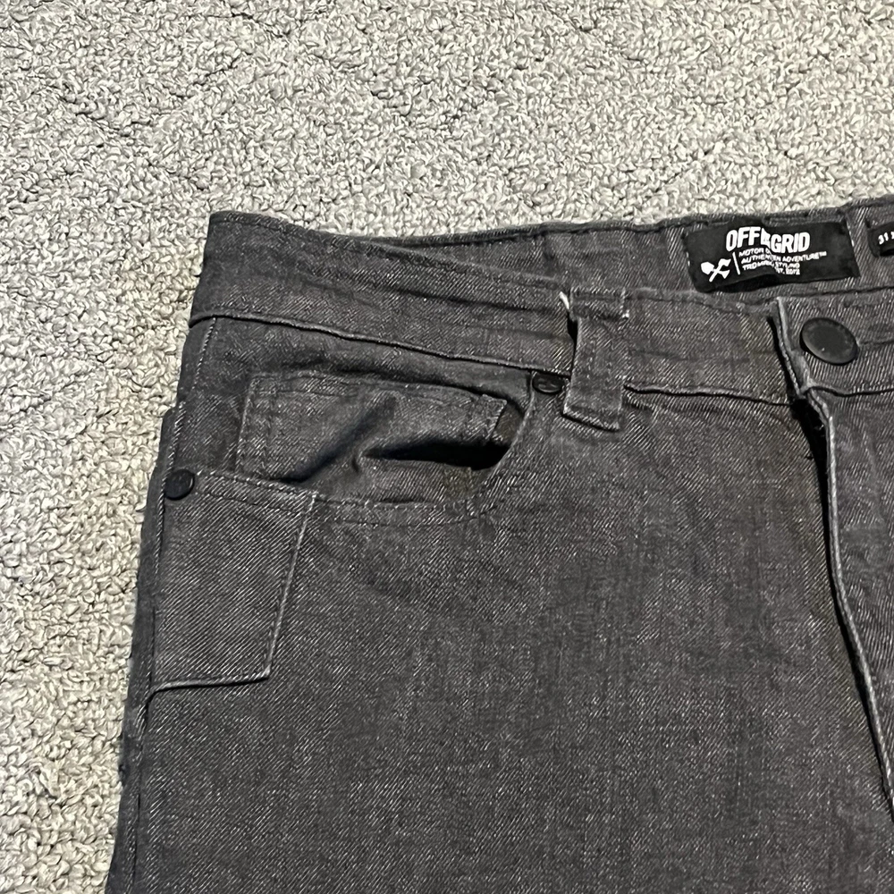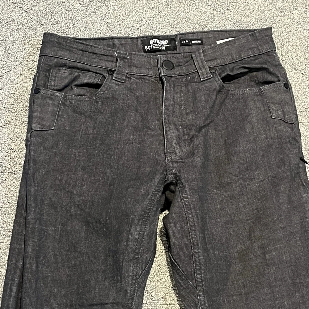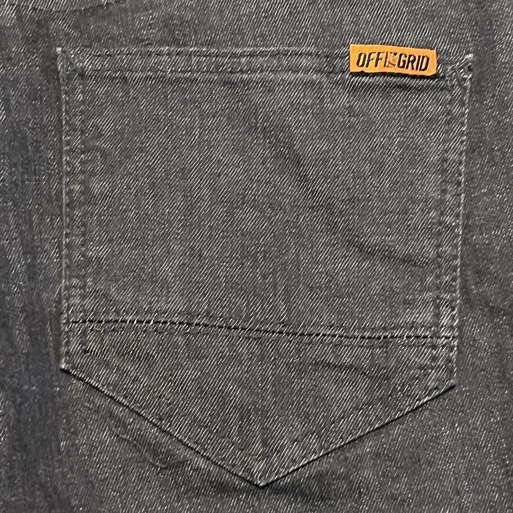 Off The Grid Jeans Mens 31x34(32) Black Hideout 2.0 Pant Heavyweight Denim Work See measurements for accurate fit Inseam Inseam 32 inches Rise 9.5 inches Waist 15.1 inches across Measurements are done flat lay