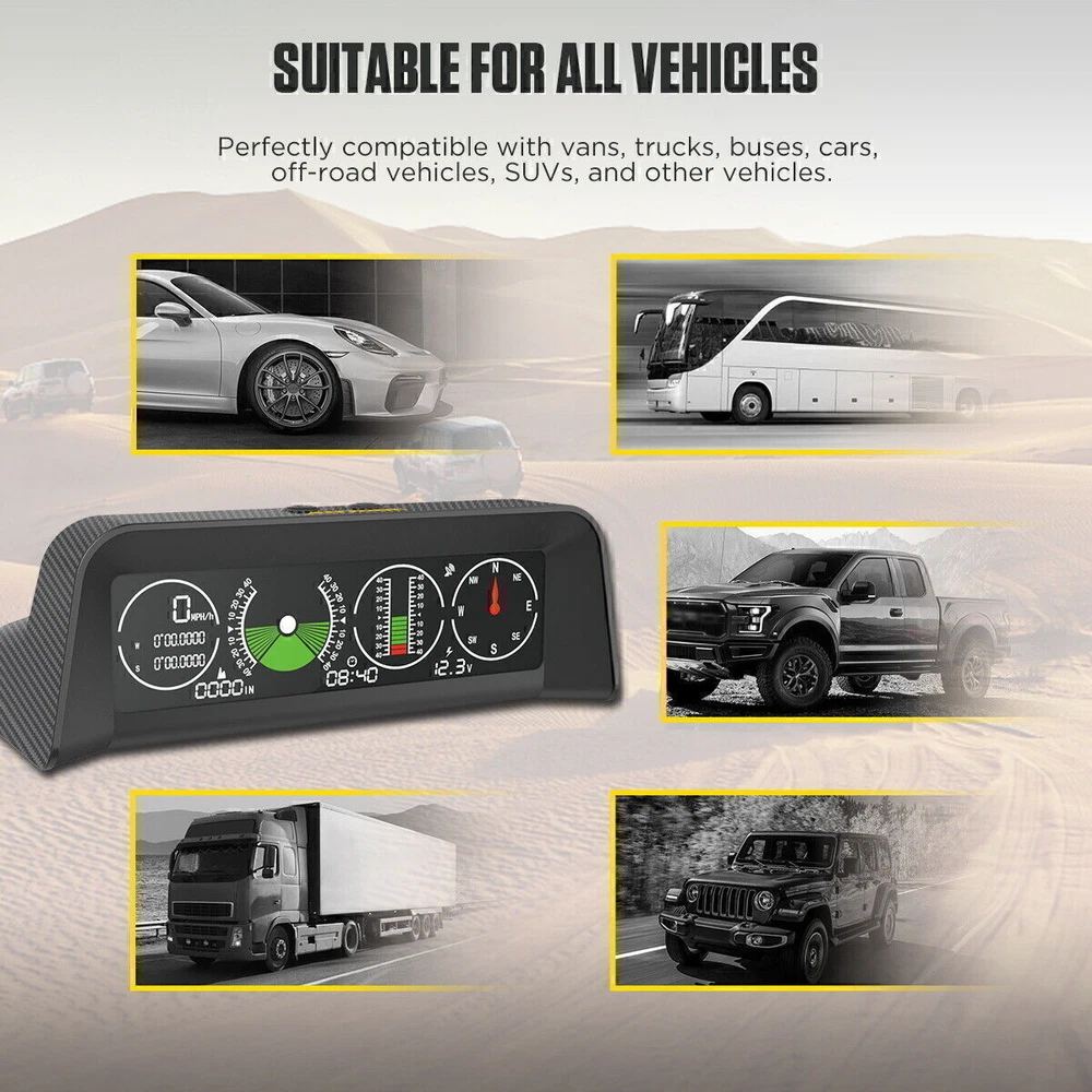 Off-Road Digital GPS Inclinometer Compass Slope Meter HUD Speedometer Gauge