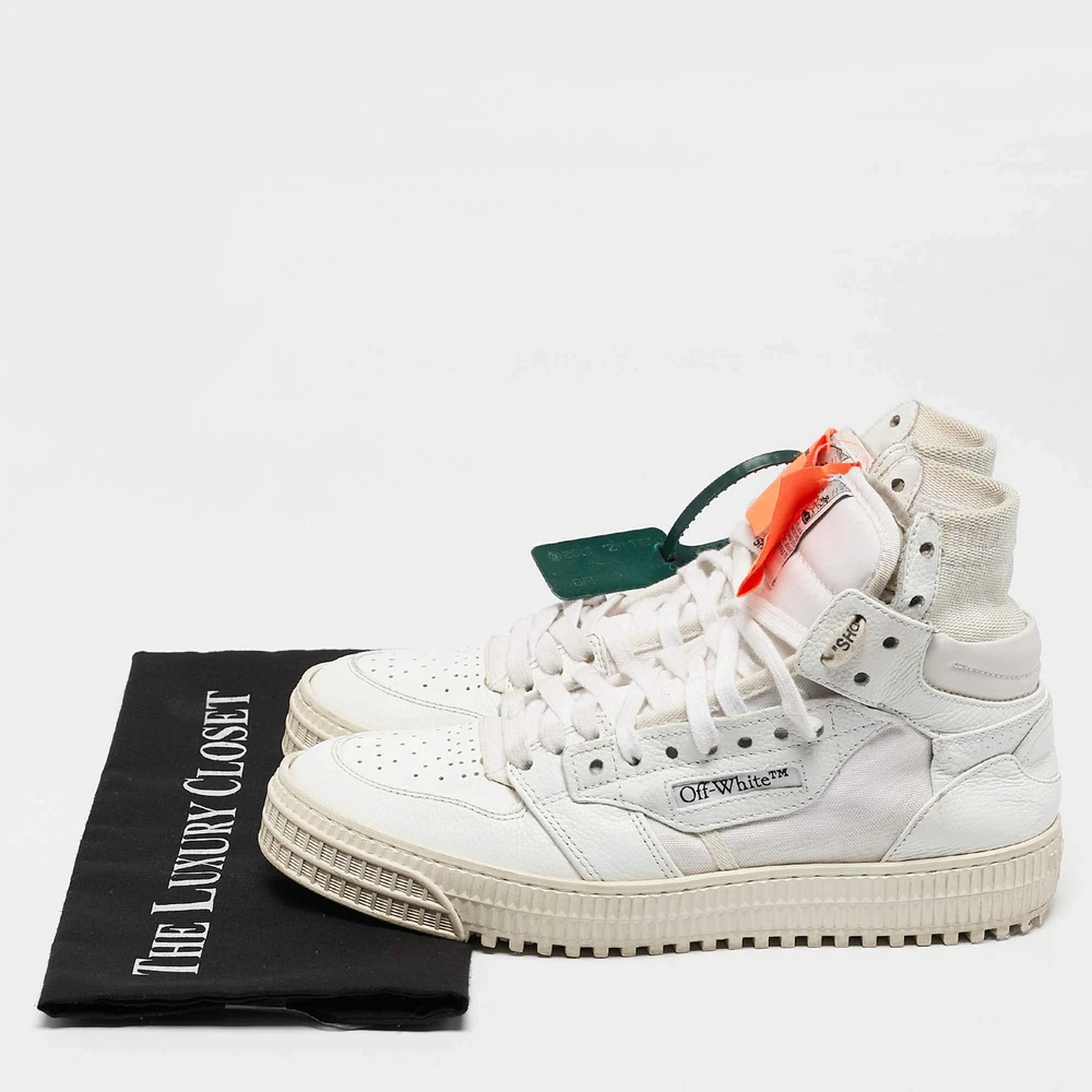 Our eBay Store About Us Contact Us Add to Favorite Sellers OffWhite 3.0 Off Court Size 39 White Canvas and Leather High Top Sneakers Coming in a classic silhouette, these designer sneakers are a seamless combination of luxury, comfort, and style. These sneakers are designed with signature details and comfortable insoles. Product Details Brand Off-White Color White Includes The Luxury Closet Packaging Outsole Length 29 cm Outsole Width 10 cm Size 39 Certified by The Luxury Closet This item has gone through a detailed authentication process overseen by our experts. We offer a lifetime guarantee of authenticity on all our items. How We Check The in-house team of experts at The Luxury Closet is highly trained to verify the authenticity and the condition of the luxury products. They ensure that only 100% authentic items are put on sale.The evaluation process is unique with its own mix of assessment criteria and differs according to the category. Each item is evaluated based on the following combination of hallmarks, hardware, stitching, symmetry, material, craftsmanship, stamping, codes, hologram stickers, and packaging. Our authenticators also check if the items have been modified or amended (e.g., aftermarket diamonds, replaced batteries, repaired bags, etc.) International Buyers Import duties, taxes and charges are not included in the item price. These charges are the buyers responsibility. Please check with your country’s customs office to determine what these additional cost will be prior to buying.