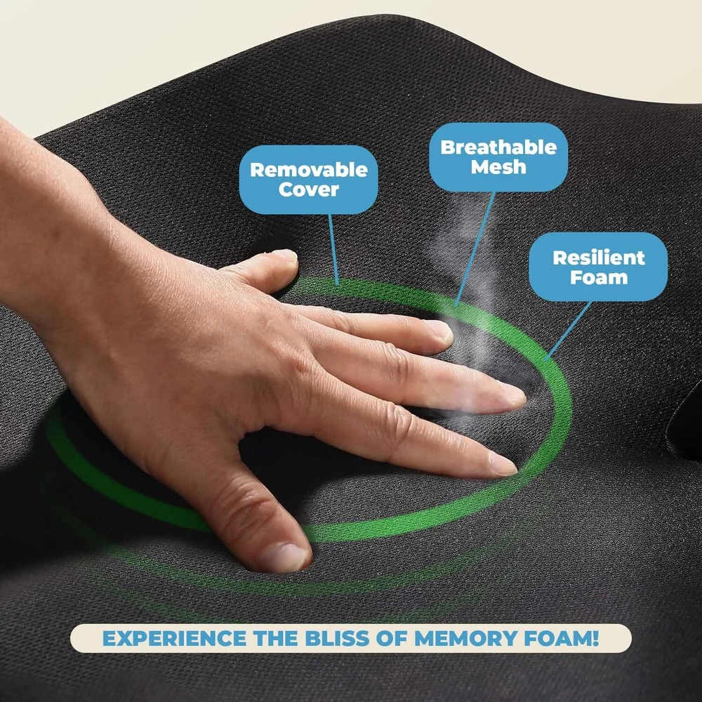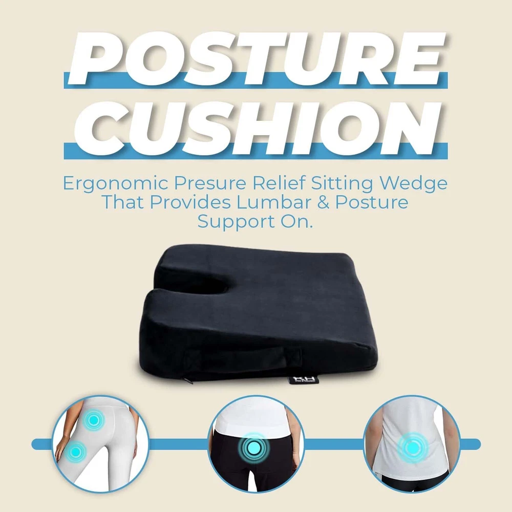 Ergonomic Wedge Cushion: The posture chair wedge cushion has been designed to promote proper alignment and relieve pressure on your spine so that your seating area becomes an ergonomic haven. It can be used in any area of your home or office. Ergonomic High-Density Foam Cushion: The wedge cushion offers firm yet comfortable support for prolonged sitting because it is made of high-density foam. Its ergonomic design promotes proper posture, reducing pressure on the lower back and hips, ensuring hours of comfort without compromising alignment Ideal for office chairs, car seats, or at home, it's the perfect solution for enhanced seated comfort. Posture-Enhancing Cushion: Whether you're at the office, in the car, or relaxing at home, our posture wedge cushion for chair transforms any seat into a source of comfort. Besides providing immediate relief from discomfort, it promotes a better posture, reducing back and hip strain and improving seating support. Secure Non-Slip Base for Stable: Our cushion's non-slip base keeps it securely on any chair or surface, allowing you to focus on work or relaxation without needing constant readjustments. Enjoy stable, worry-free comfort whether sitting at your desk, in the car, or at home. Breathable Cover: Our posture wedge cushion comes with a breathable, removable cover that's easy to clean, ensuring long-lasting freshness and hygiene. Designed for convenience, it keeps your chair cushions looking and feeling great, no matter how often you use it.