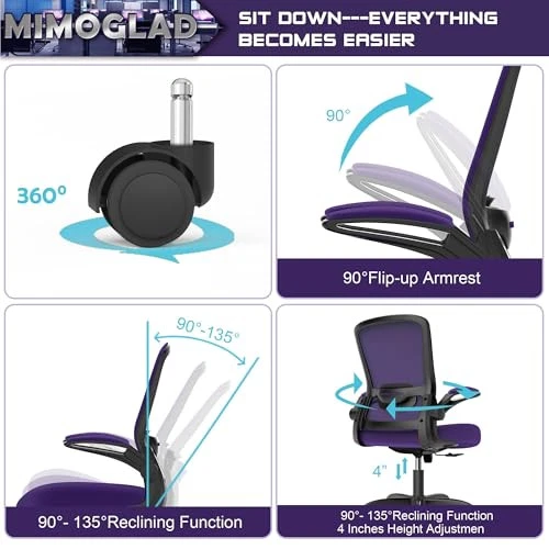 Return Policy Fast Delivery Trusted seller Office Chair, Ergonomic Desk Chair with Adjustable Lumbar Support, High Back Mesh Computer Chair with Flip-up Armrests-BIFMA Passed Task Chairs, Executive Chair for Home Office Product Description 【ERGONOMIC DESIGN OFFICE CHAIR--Improve Your Posture】The design of the backrest fits the shape of the human spine, with the adjustable lumbar support, the office chair will give your back strong support. And the thick seat also can relieve the hip pressure to offer you comfort. Thick padded back & seat take this chair to the next level of comfort. Choose this office chair, choose comfort. 【ADJUSTABLE DESK CHAIR--More Comfort】This task chair has a 4 inch lifting range to meet the needs of people of different heights, it also has a reclining function of 90-135 °which allows you to relax yourselves after work. This mesh computer chair with flip-up armrest and seat height adjustable means you can find the perfect position to ensure you a pain-free day for long hour sitting. 【HIGH QUALITY MATERIAL--Work is Easier】Certified by BIFMA and SGS. Office Chairs have Soft High-density form Seat, which is covered with durable breathable mesh fabric and has good elasticity and difficult to deform to keep comfort for longer hours. Height-adjustable GAS LIFT CHROMED, Heavy-duty base and nylon smooth-rolling casters for great stability and mobility to help promote a comfortable seated position, keeping you comfy after long hours of game or work at home. 【SPACE SAVING】The simple style of the mesh chair adapts ideally to any office furniture, especially in living rooms, bedroom, kitchen, study and office, and can be used in a variety of ways, you can flip the arms up and put it under the desk for saving space. 【WORRY FREE & Perfect Gift Idea】360 degree swivel, made of heavy-duty noiseless casters, its explosion-proof base plate with 5-star base increase safety and stability. Maximum capacity up to 300LB. We Guarantee our customers 100% satisfaction with our premium desk chair! If you’re not satisfied with this executive chair, just email us and get a solution WITH NO EXCUSE! Shipping Returns Payment Shipping Shipping is FREE to all addresses other than APO/PO boxes in the lower 48 states. All our stock ships from US-based warehouses. Shipped via USPS or UPS (depending on location and package weight) Unless stated otherwise, all orders will ship within 24-72 hours of your payment being processed. Check our feedback to see the great reviews of FAST shipping we offer. Returns Seller does not accept returns Payment We currently accept payment via eBay managed payments only. Once payment is cleared, we will dispatch your shipment within 1-3 business days. Please refer to the "Shipping" tab for more information regarding shipping speed to your destination.