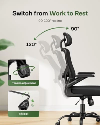 Return Policy Fast Delivery Trusted seller Office Chair Ergonomic Desk Chair with Mesh Back and Cushion,Flip-up Armrests&Lumbar Support,Ergonomic Adjustable Height Home Office Desk Chairs Product Description Tailored Support and Exceptional Comfort: Our home office desk chair offers full ergonomic support with a contoured S-shaped backrest designed to maintain optimal spinal alignment. Featuring a 2D adjustable headrest, reclining capability from 90° to 120°, seat height adjustable between 15.7″ and 19.7″, and 2D adjustable armrests, this chair ensures comfort for users of various heights, ideal for extended sitting periods. Space-Saving Flip-Up Armrests for Enhanced Comfort: This ergonomic gaming chair is equipped with 2D armrests, padded for soft and comfortable arm and elbow support. Adjust the armrests up or down by 1.18 inches to suit your desk height and sitting preference. When not in use, fold the armrests up 90° to easily tuck the chair under your desk, optimizing space in your gaming or workspace. Targeted Lumbar Support: Unlike other chairs on the market, the ergonomic desk chair offers customizable lumbar support, allowing adjustments of 0.8″ forward and backward and 1.2″ up and down. This unique design provides precise lumbar alignment with your spine, reducing back pain and enhancing comfort throughout your workday. Enhanced Soft Cushion: Designed for heavier individuals, our office chair includes a 3.2″ thick, high-density foam seat cushion that retains its shape while delivering sofa-like comfort, even with prolonged use. The breathable mesh fabric allows for airflow, preventing heat and moisture buildup to keep you cool and comfortable during long hours of sitting. Tested for Durability: This comfortable desk chair is BIFMA certified, ensuring long-lasting performance and reliability. Equipped with a Class 3 SGS gas lift, a sturdy 27.6″ steel base, and smooth, quiet 360° caster wheels, this gaming chair can support up to 300 lbs with ease. Shipping Returns Payment Shipping Shipping is FREE to all addresses other than APO/PO boxes in the lower 48 states. All our stock ships from US-based warehouses. Shipped via USPS or UPS (depending on location and package weight) Unless stated otherwise, all orders will ship within 24-72 hours of your payment being processed. Check our feedback to see the great reviews of FAST shipping we offer. Returns Seller does not accept returns Payment We currently accept payment via eBay managed payments only. Once payment is cleared, we will dispatch your shipment within 1-3 business days. Please refer to the "Shipping" tab for more information regarding shipping speed to your destination.