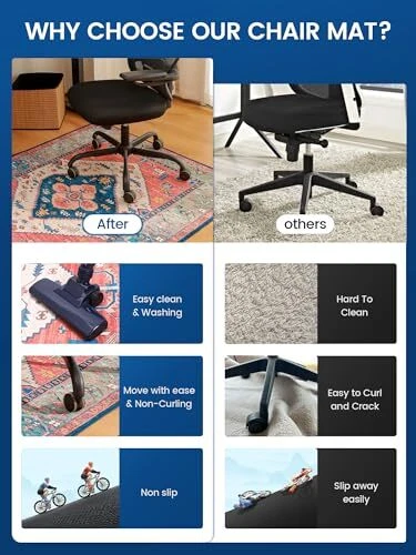 Return Policy Fast Delivery Trusted seller Office Chair Mat for Hardwood Floor, 48"x60" Desk Chair Mat for Rolling Chairs, Non Slip Computer Chair Mat, Office Rug Mat for Office Home Hard Floor, Under Desk Mat for Gaming Chair-Red Product Description 【Floor Protection】Say goodbye to scratches and wear on your precious hardwood, tile, and laminate floors. Office chair mat offers unmatched protection for all surfaces. It prevents wear from rolling chairs, stops groove formation, and maintains the floor's pristine condition, reducing noise. Floor protectors for chair is the perfect choice for both office workers and avid gamers 【Anti-Slip Stability Office Chair Mat】Equipped with anti-slip backing, the desk chair mat remains securely in place, providing a smooth surface that allows office chairs to glide effortlessly without slipping. Each movement is easy and secure, maintaining a safe and efficient workspace 【Elegance & Practicality Desk Rug】Upgrade from your ordinary plastic mats and monotone black chair mats.Choose our 48x60 inch high-quality fabric-printed carpet protector, which brings a touch of elegance to any space. Its stylish design seamlessly integrates into offices, hallways, study areas, living rooms, or bedrooms, significantly enhancing both the functionality and the decor of your home office 【Durability & Longevity】Constructed from high-wear-resistant materials, the office chair mat withstands daily wear and tear, maintaining its form and functionality over time. Even in high-traffic areas, it retains its structure and functionality, making it the ideal choice for those seeking long-lasting office furniture protection 【Easy to Clean】Keeping your workspace clean has never been easier. Simply wipe with a cloth or use a vacuum cleaner to remove any dust or debris. For deeper cleaning, the office chair mat for hardwood floor is also machine washable, ensuring its lasting appearance and practicality Shipping Returns Payment Shipping Shipping is FREE to all addresses other than APO/PO boxes in the lower 48 states. All our stock ships from US-based warehouses. Shipped via USPS or UPS (depending on location and package weight) Unless stated otherwise, all orders will ship within 24-72 hours of your payment being processed. Check our feedback to see the great reviews of FAST shipping we offer. Returns Seller does not accept returns Payment We currently accept payment via eBay managed payments only. Once payment is cleared, we will dispatch your shipment within 1-3 business days. Please refer to the "Shipping" tab for more information regarding shipping speed to your destination.
