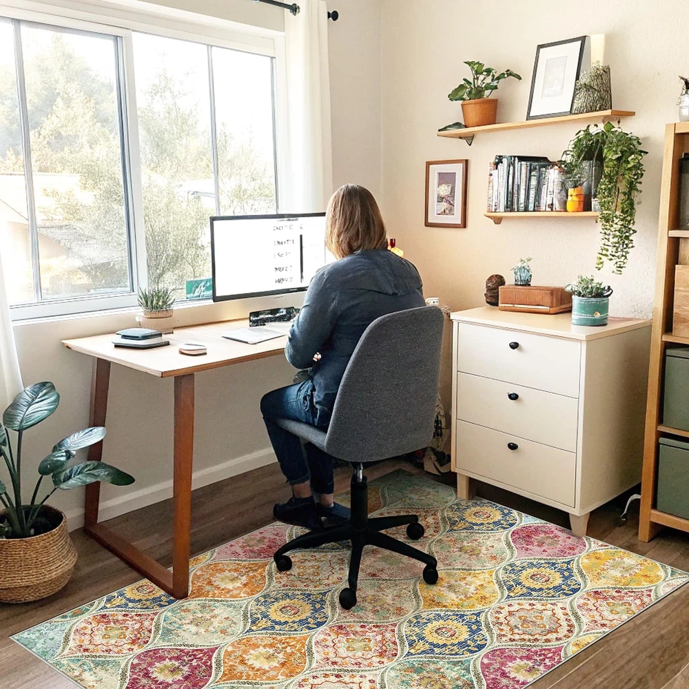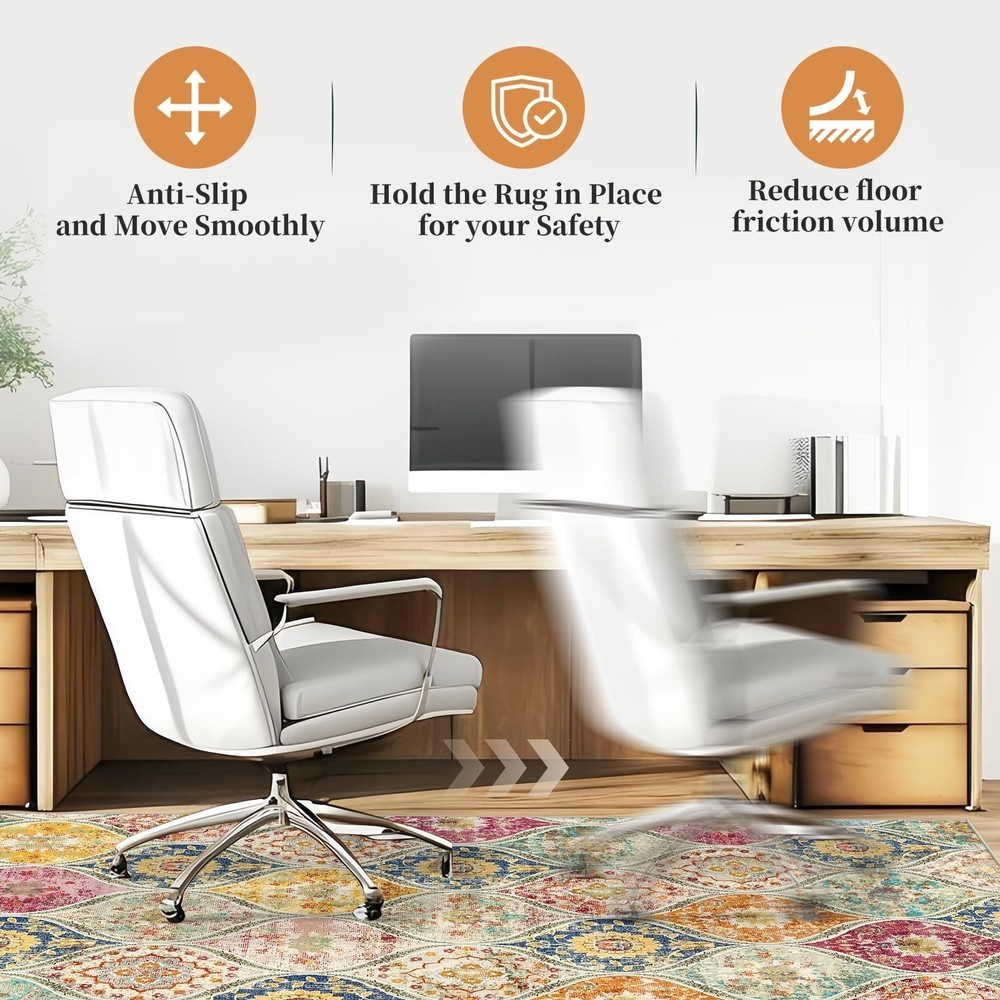 Office Chair Mat for Hardwood Floor & Tile Floor,48"X 60" Heavy Duty Desk Chair Mat for Hard Floors, Under Desk Rug for Rolling Computer Chair,Anti Slip,Low Pile Carpet Floor Protector-Multi Product Details Size: 48"X 60" Color: Multi Color Brand: Lreedy MPN: 001 UPC: Does not apply EAN: Does not apply Material: Polyester & Polyester Blend Brand: Lreedy Size: 48"X 60" Color: Multi Color Style: Iran Shape: Rectangular Product Dimensions: 60"L x 48"W x 0.2"Th Surface Recommendation: Polyester Manufacturer: Lreedy Number of Items: 1 Material: Polyester & Polyester Blend Brand: Lreedy Size: 48"X 60" Color: Multi Color Style: Iran Shape: Rectangular Product Dimensions: 60"L x 48"W x 0.2"Th Surface Recommendation: Polyester Manufacturer: Lreedy Number of Items: 1 Item Weight: 3.47 pounds Item model number: 001 Date First Available: June 6, 2024 [Stylish Enhancement] Elevate your space effortlessly with the Lreedy office rug. Crafted from high-quality printed fabric, it adds vibrance and sophistication to any setting, from offices to bedrooms. [Stability and Comfort] Experience comfort and stability with our anti-slip, ergonomic rug. Glide smoothly on its textured surface while enjoying softness underfoot, even during long work hours. [Durability and Convenience] Our chair mat's innovative design prevents curled edges and indents, ensuring long-lasting performance. Made from durable polyester, it offers enhanced sturdiness and easy maintenance. [Effortless Maintenance] Keep your workspace clean with ease. Vacuum or wipe for quick cleaning, or toss it in the washing machine for a thorough refresh. When not in use, fold for convenient storage. [Protecting Your Floors] Safeguard your floors from scuffs and wear with our protective chair rug. Designed for hard surfaces, Office Chair Matit preserves the pristine condition of hardwood, tile, laminate, and linoleum floors for years to come.