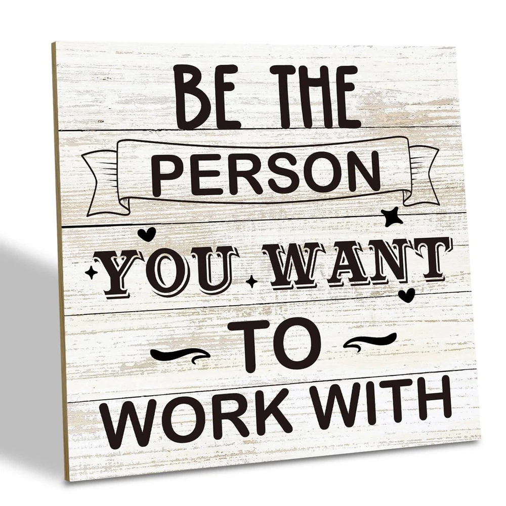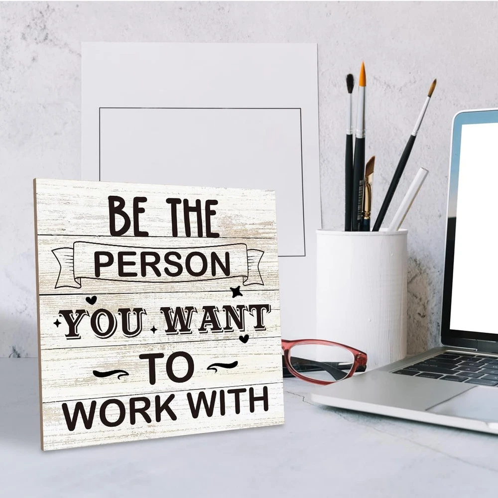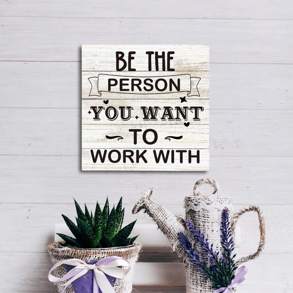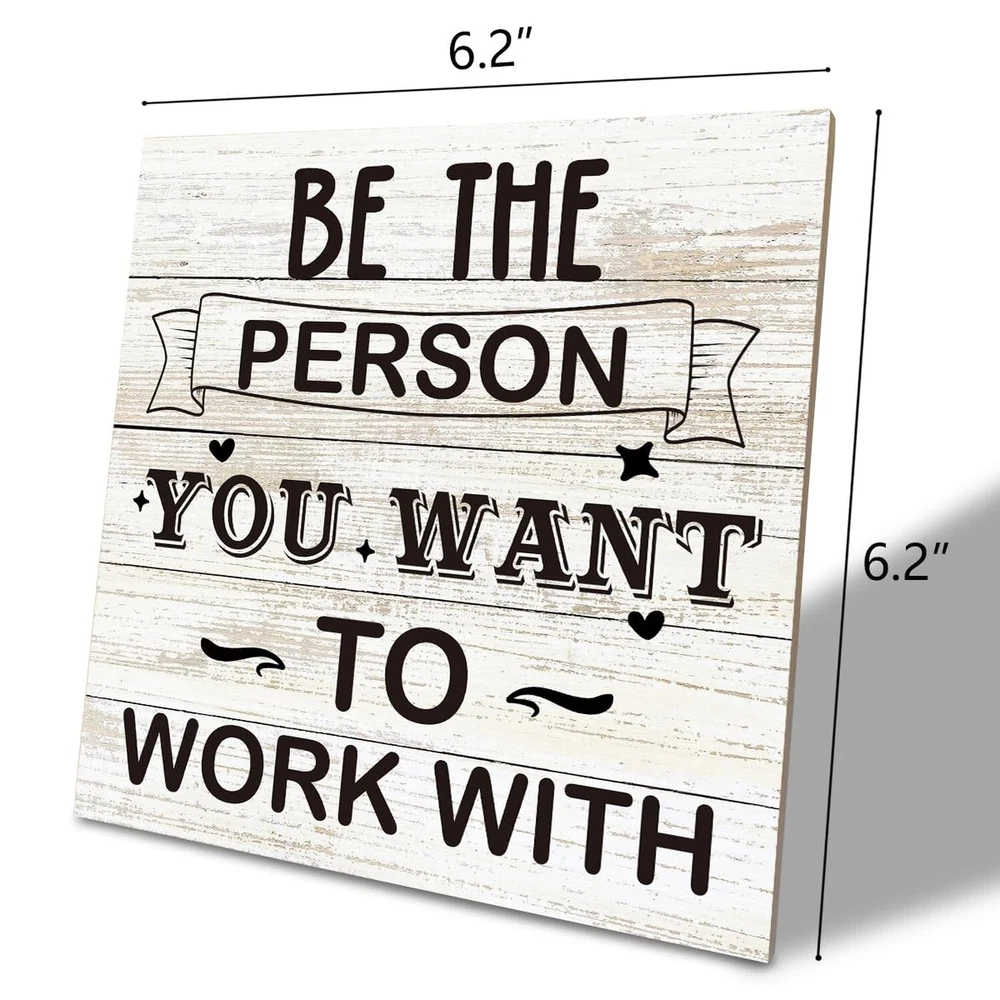 Office Decor, Wood Plaque Table Art Sign 6.2 * 6.2inch, Plaque with Inspirational Quotes, Home Office Decor, Desk Decor, Motivational Gift for First Job, Be the Person You Want to Work With Product Details Color: Office Décor 14 Brand: SUSZDOU MPN: TBMP268 UPC: Does not apply EAN: Does not apply Color: Office Décor 14 Brand: SUSZDOU Recommended Uses For Product: Home decor, office decor, business place decor, inspirational gift, motivational gift Mounting Type: Wall Mount Product Dimensions: 6.2"L x 6.2"W Shape: Rectangular Item Weight: 0.1 Kilograms Style: Modern Product Dimensions: 6.2 x 6.2 x 0.1 inches Item Weight: 3.52 ounces Manufacturer: SUSZDOU Country of Origin: China Item model number: TBMP268 1.Size Details: these wooden rustic signs are approx. 15*15 cm/ 6.2*6.2 inches, the right size will not take up too much space to display, easy to match them with other ornaments and decorations. 2.High Quality: theses wooden signs are made of quality pine wood and includes an easel, a stainless support and stainless steel hanger hook for tabletop display or wall decor, completed by fine workmanship. environmentally friendly UV ink printing is clear, no fading, and no peeling. The signs are anti-corrosion, not easy to fade and crack, they will serve you for a long time 3.Wide Range of Applications: these decorative wood signs can be placed in many places, perfect for decorating home, some business places and working place. 4.Warm Gift - These Inspirational decor sign can be an ideal gift for your family, lovers, friends, colleagues. They are perfect husband gifts, boyfriend gifts, anniversary gifts, deployment gifts, dating gifts, wedding gifts, Halloween, Thanksgiving, Valentine's Day, Christmas, wedding gifts and long-distance relationship gifts, etc 5.Inspirational Function: these table wood decors are printed with some primitive words, which can better play the inspirational function, when people see the decors, they will get inspired by positive messages Dimensions: 6.26.2inch (1616cm) Material: made of quality pine wood; This is looking for uniquely designed gifts for you and your family or friends