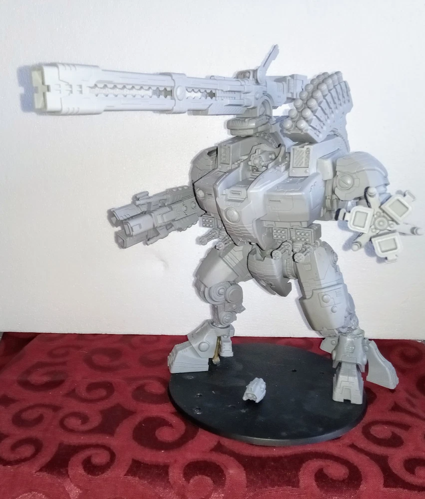 Official Forge World KX139 Ta'unar Supremacy Armour Armor - Built This listing includes: - Assembled KX139 Ta'unar Supremacy Armour Body - Assembled Heavy Rail Cannon Array and Missile Pod. These weapons can be mounted on the back and have not been attached or magnetized. It's up to the buyer to decide how this will be done. - Assembled Tri-Axis Ion Cannons ( Both Arms) - Two heads to choose from, not yet glued down. One had previously been used for a kitbash and shows signs of that on the bottom, but is still usable. Details: - This Forge World model is resin, and the body, weapons, and arms were originally sold separately. Availability from Games Workshop is rare. - The arms and chest-mounted weapons are magnetized - The legs and hip joints are pinned and glued as this is a heavy model. one of the rods can be seen on the back of the knee, but lines up well enough with the details that it can be hidden with paint. - One foot is propped up by a clear piece of plastic while the other one is held up by a portion of the rod used to pin the leg. The buyer can remove these if they wish, but i do not trust the design of the feet to hold up the model long-therm. These can also be hidden by adding details to the base. - The exposed bit of ball joint on the left leg will require some cleanup. -Some imperfections in the resin have already been cleaned up with green stuff, but a spot or two might have been missed. Buyer should do a final clean-up pass before priming and painting. -Base has some holes that will need to be covered up, which should happen naturally as the buyer finishes the model. - Includes original instructions - Look closely at the pictures and zoom in so you know what you're getting. This model is sold AS-IS, and will be packed extremely well. From a Smoke-Free Home. US Shipping only! Questions?...just ask.