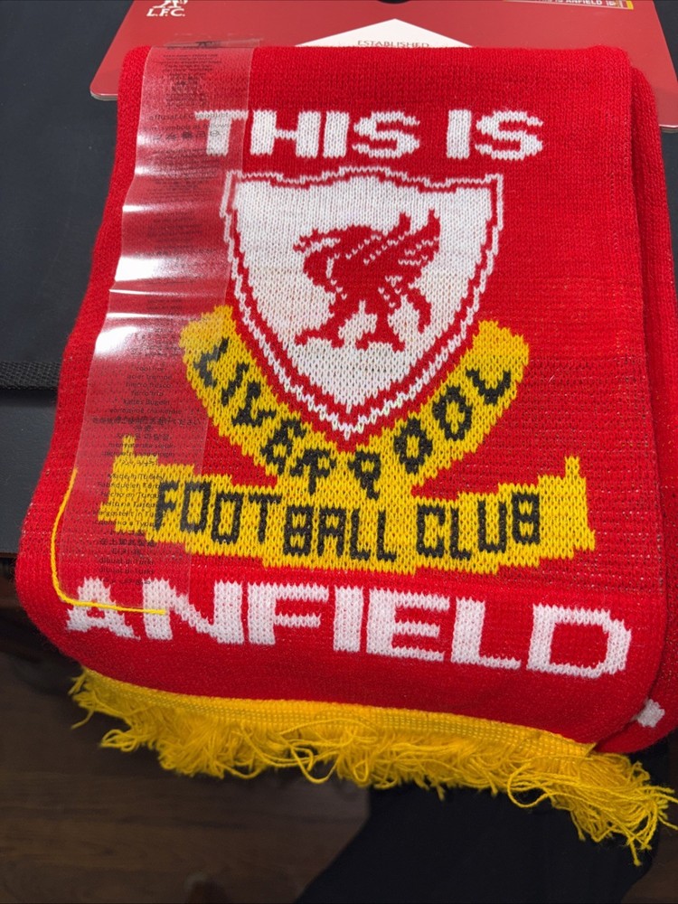 The Official Liverpool Football Club Anfield Red, White, and Gold Scarf is a stylish accessory for any soccer fan. This scarf is licensed by L.F.C., making it an authentic piece of fan apparel. With the iconic design of red, white, and gold colors representing the Liverpool team, this unisex adult-sized scarf is perfect for showing support for Steven Gerrard and the entire Liverpool squad. Add this officially licensed scarf to your soccer memorabilia collection to display your loyalty to the team.