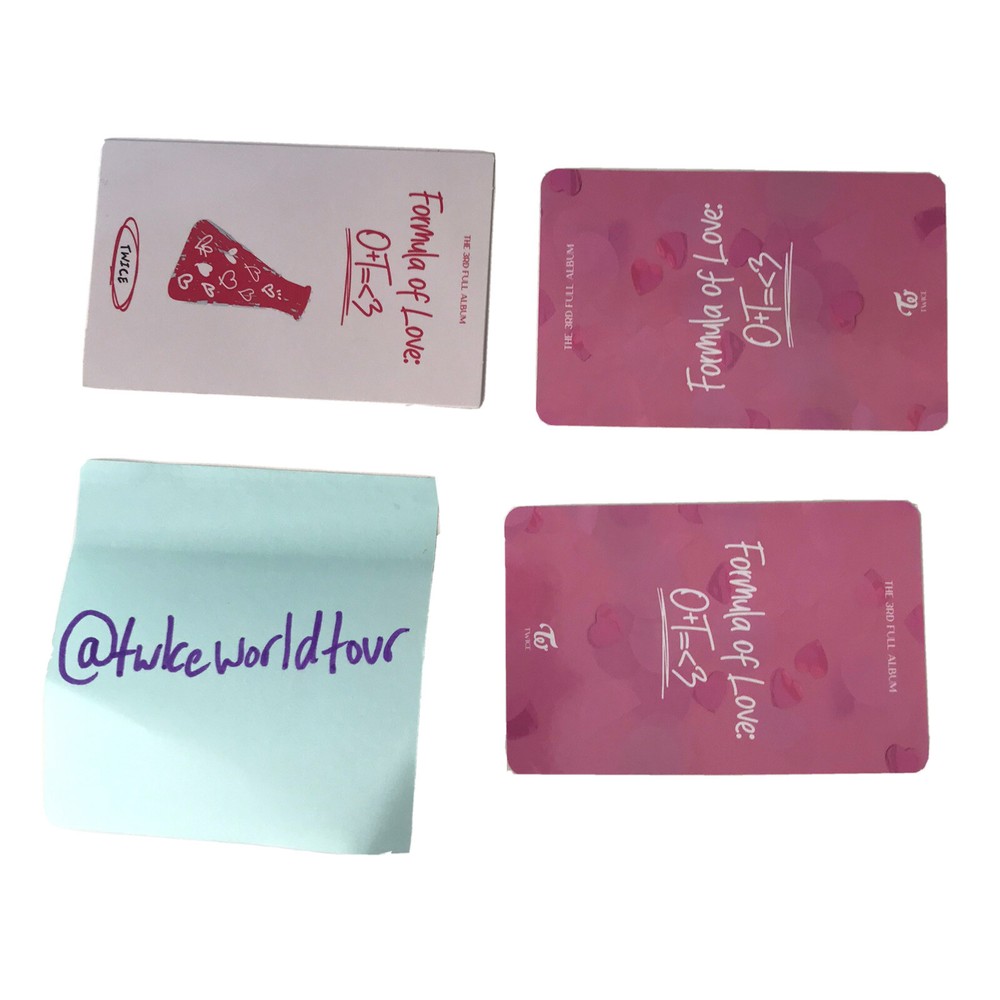 TWICE photocard set (official). 3 group ohotocard, will come in top loaders and penny sleeves safely and freebies (only selling as set.) Availability: ✅✅✅ All sales final I DO NOT TAKE PAYPAL!!!!!! DO NOT PAY WITH PAY PAL JUST PAY THROUGH EBAY. if you can’t pay with either pay with VENMO