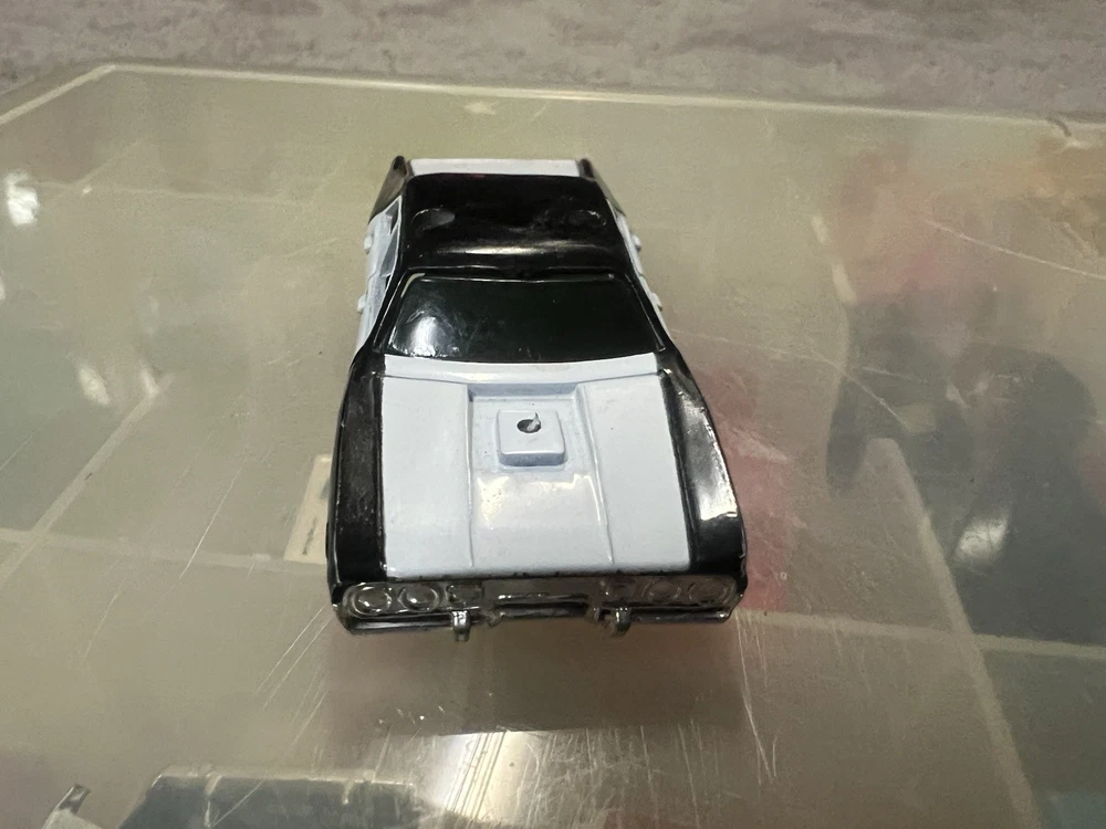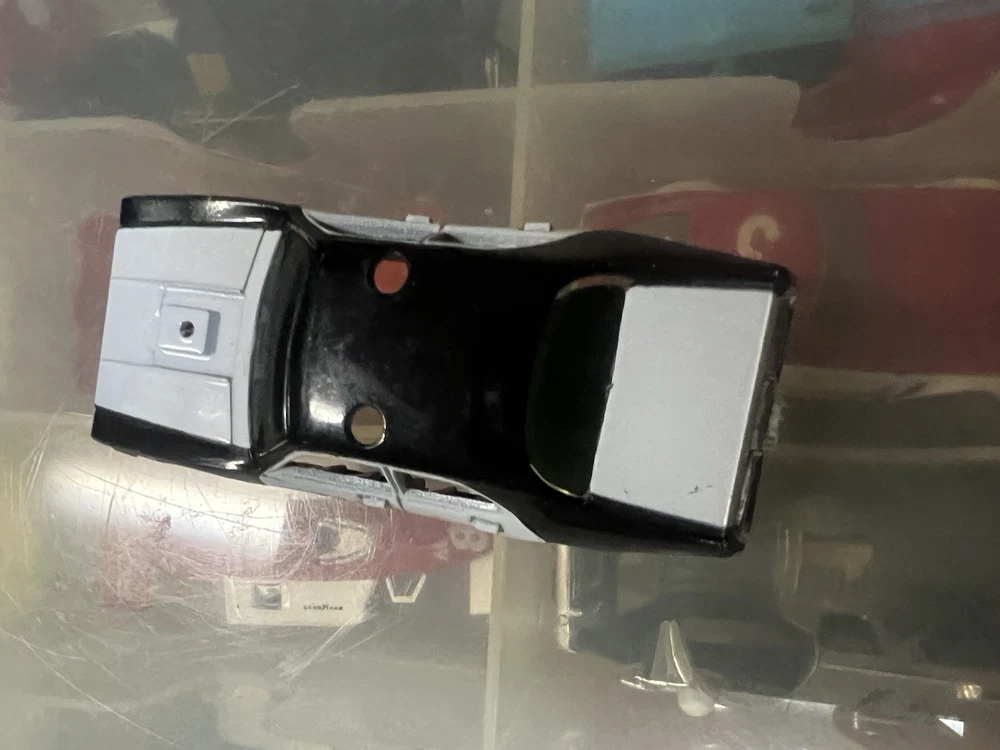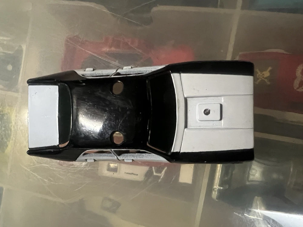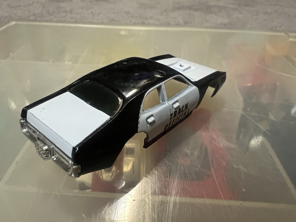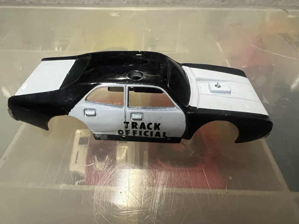 Tyco track official black-and-white slot car body in good shape with slight wear . No engine on top.