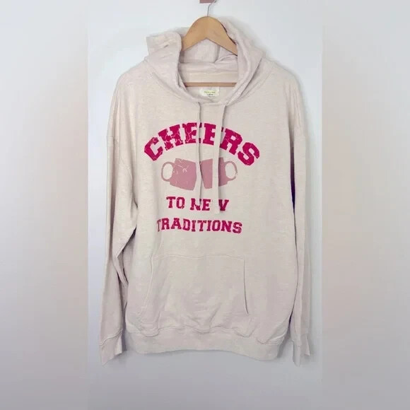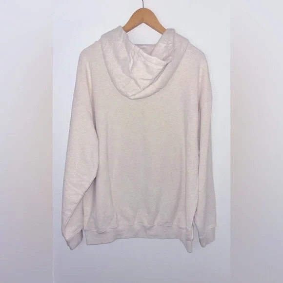 Stay warm and stylish with this cozy cream sweater. Perfect for any casual outing. Pullover Style Hooded Long Sleeve Kangaroo Pocket Oversized Fit