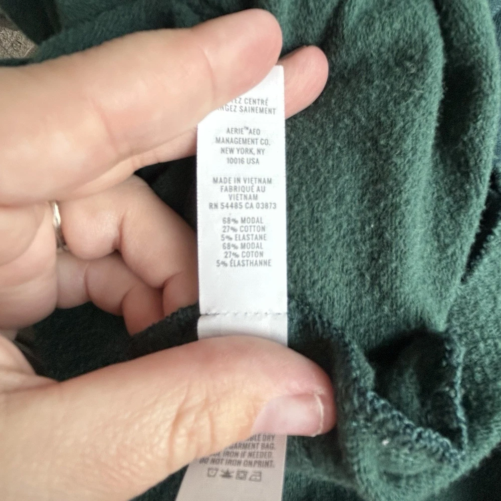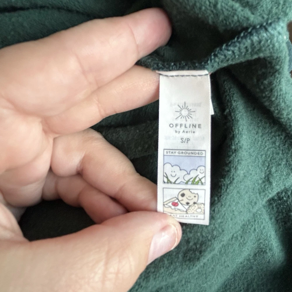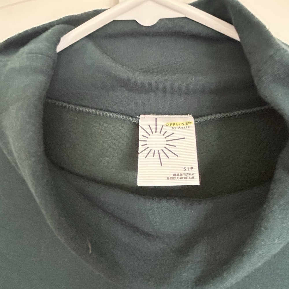 Step into comfort and style with the Offline by Aerie Women's Funnel Neck Pullover. Designed for the active woman, this size small sweatshirt features a cozy blend of cotton, polyester, and cotton blend materials. The long sleeves and thumb holes offer added warmth and functionality, perfect for walking or any activewear occasion. The solid green hue complements the knit fabric's versatility, making it an easy match for your workout gear or casual outings. Its pullover closure ensures a snug fit, while the machine washable garment care makes maintenance a breeze. Embrace the perfect blend of comfort and style with this Aerie sweatshirt.