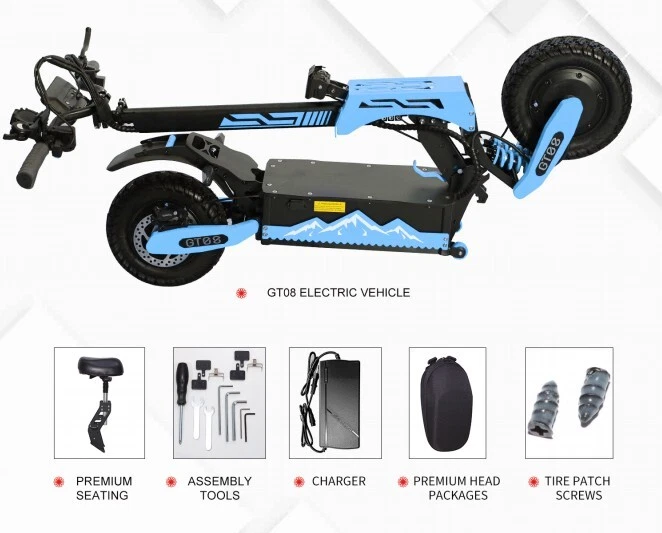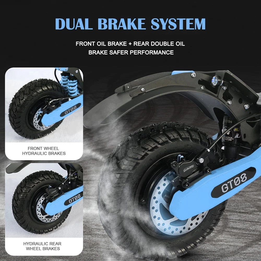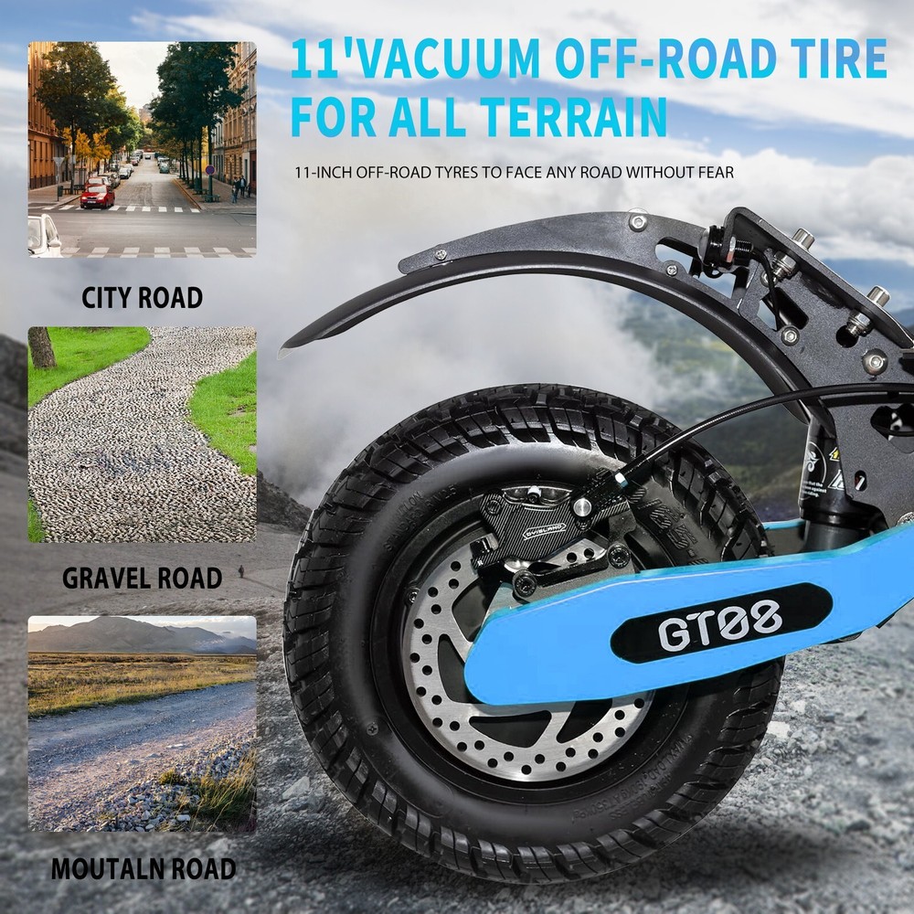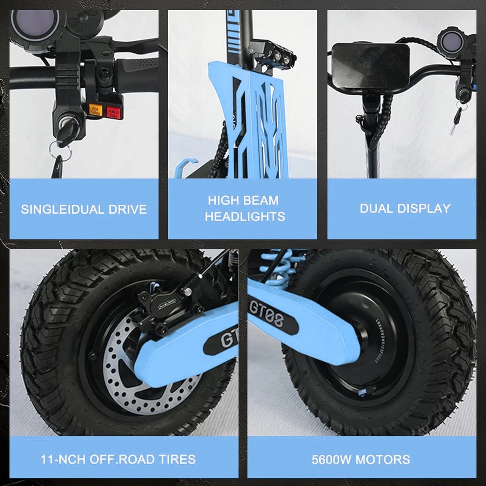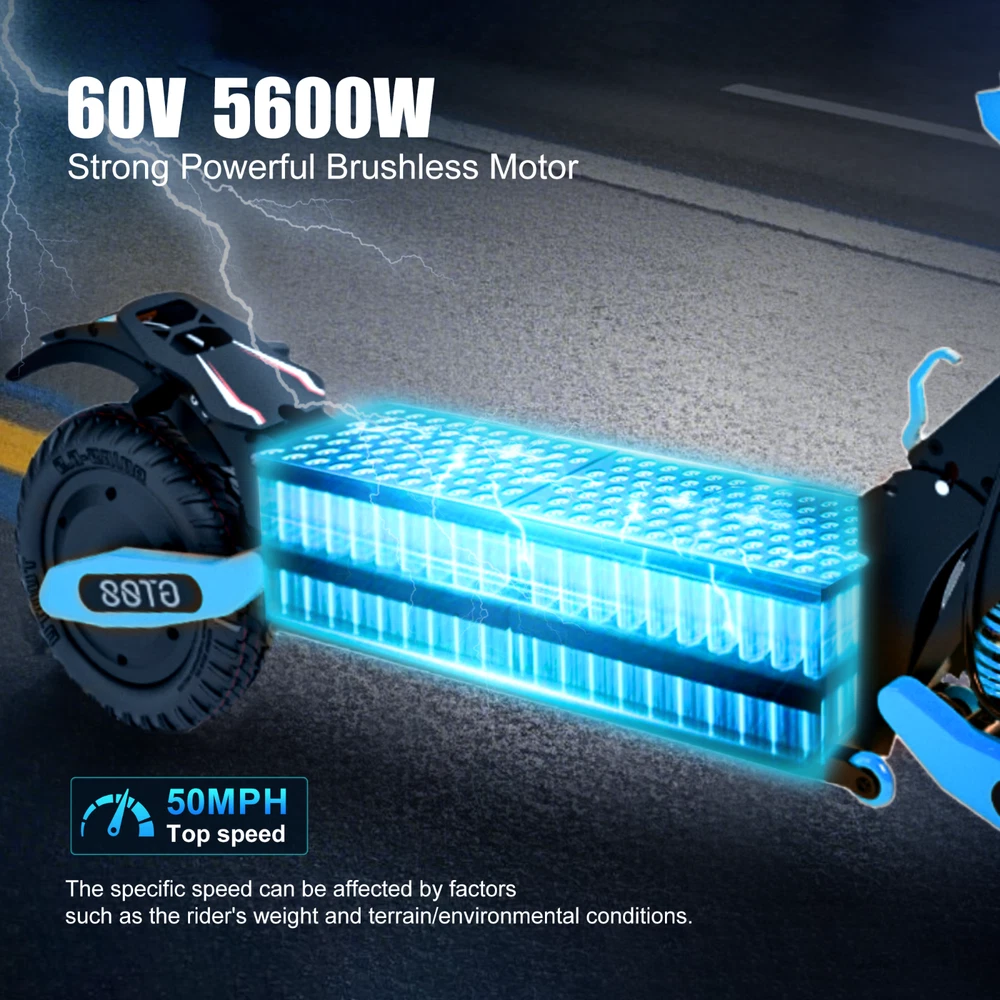 GT08 Electric Scooter - The Ultimate Travel Experience Are you ready to embrace an unprecedented travel revolution? The GT08 electric scooter combines outstanding performance, stylish design and top-of-the-line configuration to bring you a unique riding experience. 🛴1. Powerful Performance, Lightning Speed Equipped with a super-strong 5600W (2800W*2 dual-drive) motor, the surging power is triggered at your fingertips. With a top speed of 50MPH, it allows you to freely shuttle on urban roads and easily overtake traffic congestion. Whether it's a flat avenue or a rugged path, it can be easily handled. 🔋2. Long-lasting Battery Life, Worry-free Riding It is equipped with a large-capacity 60V 27AH battery, with a cruising range of up to 46 Miles, meeting your daily travel and short-distance travel needs. The charging time is only 6 - 8 hours. You can complete the charging during your night's rest without delaying your trip. 🛡️ 3. Safety Guarantee, Safe Riding Brake System : The front disc brake is combined with the rear black high-grade oil brake. The braking is sensitive and can effectively shorten the braking distance, ensuring your safety during riding. · Shock Absorption System : The perfect combination of the front double spring shock absorber (orange) and the rear hydraulic shock absorber (black) can effectively filter out road bumps and provide a smooth and comfortable riding experience. · Lighting System : The new aluminum alloy dual-eye headlights have high brightness and a wide irradiation range, illuminating your way forward. The eagle-eye lights serve as brake lights with obvious warning effects; the flowing turn signals are fashionable and eye-catching, improving your visibility when riding. 📱 4. Comfortable Design, Easy to Control · High-quality Bicycle Handlebar : It has a comfortable grip and flexible control, allowing you to easily control the direction. Large Screen Dashboard + New Small Dashboard with Key Lock : Clearly displays vehicle information such as speed, battery power and mileage, allowing you to easily understand the vehicle status at any time. The key lock design provides additional security for your vehicle. New High-quality Adjustable Seat : You can freely adjust the seat height according to your height and riding habits to find the most comfortable riding position. 🎯 5. Convenient Travel, Easy to Fold It adopts a one-step folding design, which is simple and quick to operate. After folding, it is small in size and easy to carry and store. Whether it's placed in the trunk of a car or in a corner of your home, it doesn't take up much space. 💯 6. High-quality Materials, Durable The frame is made of aluminum alloy + iron, which is durable and reduces the body weight. The pedal is made of aluminum cover + silicone sandpaper, which is not only anti-slip and wear-resistant, but also can effectively reduce noise. The off-road vacuum tires have strong grip and are suitable for various complex road conditions. 🎁 7. Rich Accessories, Attentive Service The scooter comes with 2 pairs of brake pads, a high-quality handlebar bag, a tool kit + 1 cross screwdriver, 1 moisture-proof bag, 1 US-spec 5A charger and 1 instruction manual. You can enjoy worry-free after-sales service. 🔥 8.Exceptional Tire Design Equipped with 11 - inch off - road vacuum tires, compared with ordinary tires, it has a wider tread and a larger ground contact area. It can provide excellent grip and stability even in complex road conditions. Whether it's a muddy path, a rugged mountain road, or a potholed road surface, it can be easily handled to ensure safe riding. The unique anti - slip pattern design effectively reduces the risk of slipping on rainy days, allowing you to ride smoothly even on wet roads. 💡 9.Cool Lighting System, Illuminating the Way Forward Side Lights and Ambient Lights : The scooter is equipped with side lights and ambient lights, which not only enhance the visibility of night riding but also add a unique sense of fashion to your travel. The soft light of the side lights makes you more conspicuous when riding at night, ensuring safety; the ambient lights create a cool riding atmosphere, making you the focus of the street. Eagle - Eye Brake Lights : The eye - catching eagle - eye brake light design, when you brake, a strong light instantly lights up, which can promptly remind the vehicles and pedestrians behind, effectively avoiding rear - end collisions and escorting your riding safety. Flowing Water Turn Signals : The unique flowing water turn signals present a smooth dynamic effect when turning, clearly indicating your driving direction. They are more eye - catching than traditional turn signals and greatly improve the safety of riding. 📳 10.Top - Notch Shock Absorption System, Comforting Every Journey Front Dual - Spring Shock Absorbers (Orange) : The orange front dual - spring shock absorbers not only have a strong visual impact in appearance but also can effectively filter out road bumps and provide a stable riding experience. Even when driving on rough roads, you can feel smooth and comfortable, reducing the vibration of your hands and body. Rear Hydraulic Shock Absorbers (Black) : The black rear hydraulic shock absorbers have excellent shock - absorbing performance. They can automatically adjust the damping according to the road conditions and provide just - right support. Whether you are driving at high speed or slowly climbing a slope, you can feel comfort and stability. The item is UL 2849 certified On May 30, 2025 at 04:20:51 PDT, seller added the following information: On Jun 3, 2025 at 00:33:13 PDT, seller added the following information: On Jul 4, 2025 at 00:47:26 PDT, seller added the following information: