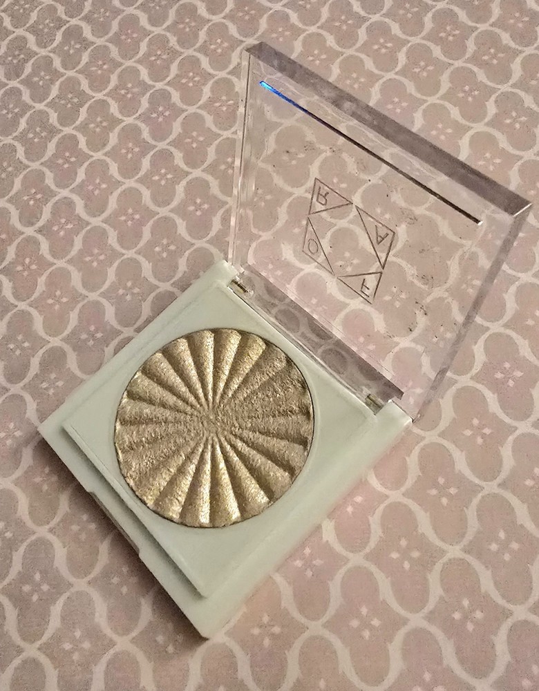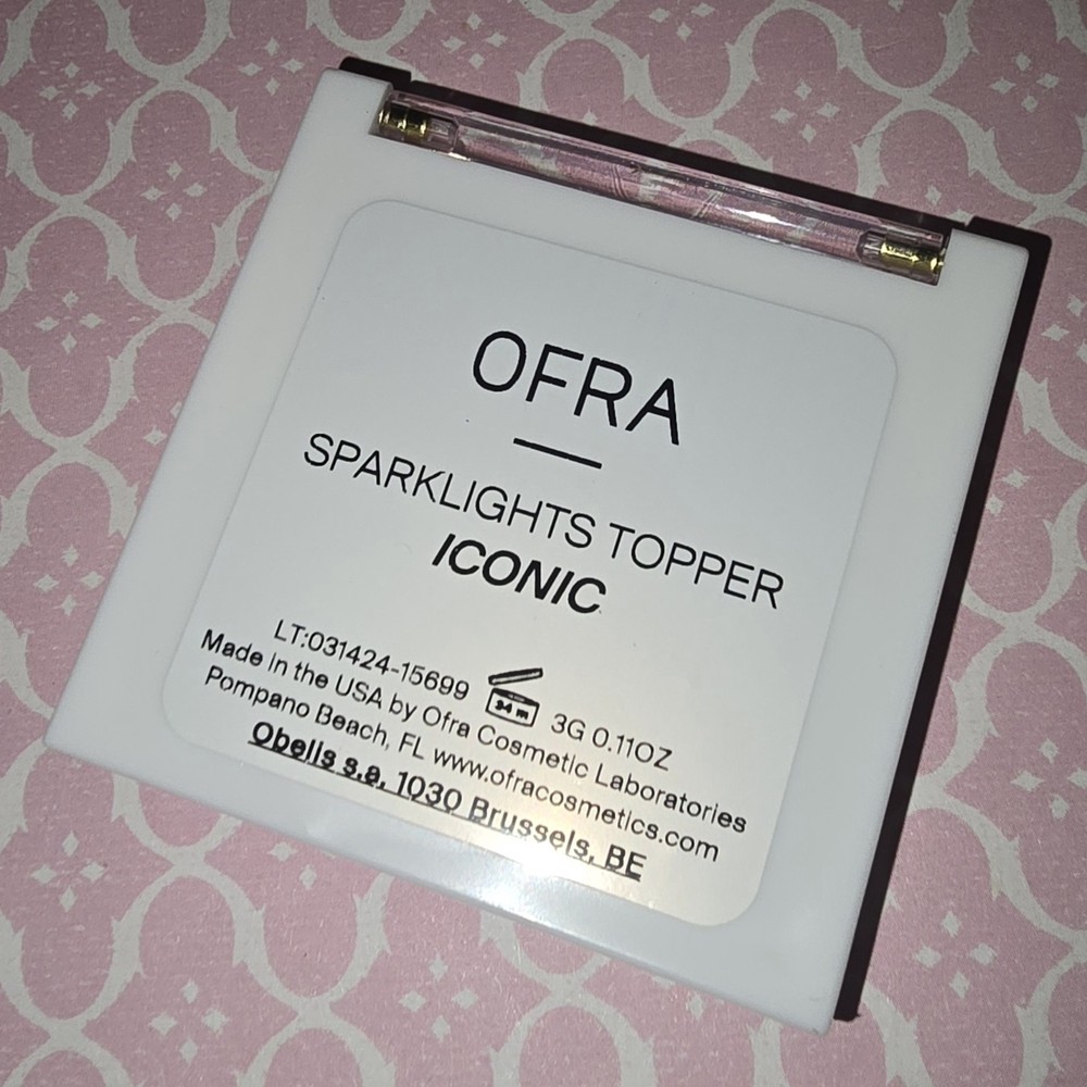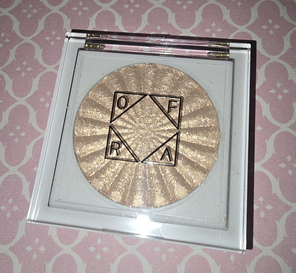 A liquid-to-baked champagne-shaded topper that provides a high-intensity, radiant glow. Described as the shade that puts glow on the map. It's Ofra's signature liquid-to-baked technology which creates the pigmented and creamy texture. Can be used as a highlighter or a topper for other products like eyeshadows, to enhance radiance. Formulated for all skin types, and reviewed as being 91% Top Allergen-free. Travel-sized at 0.11 OZ, new in box. MSRP $9.99.