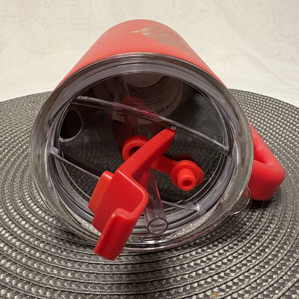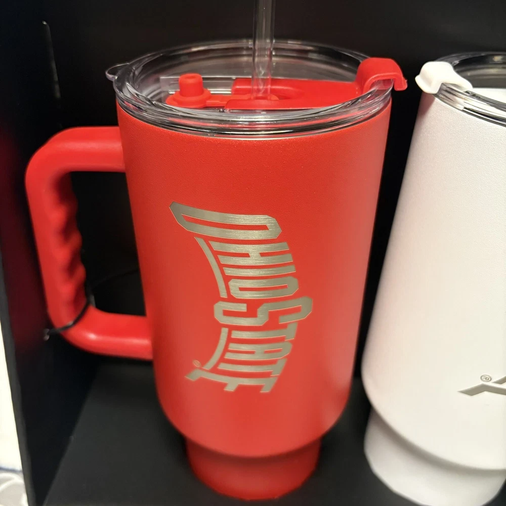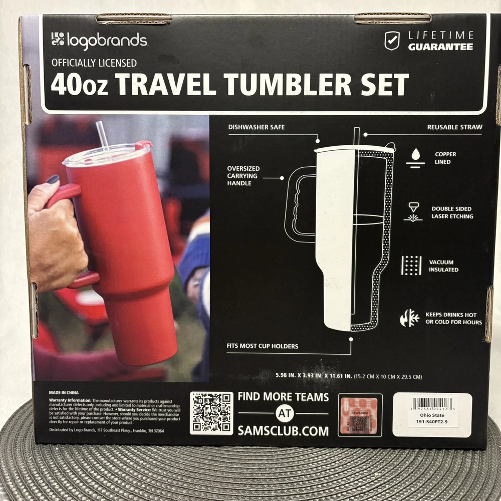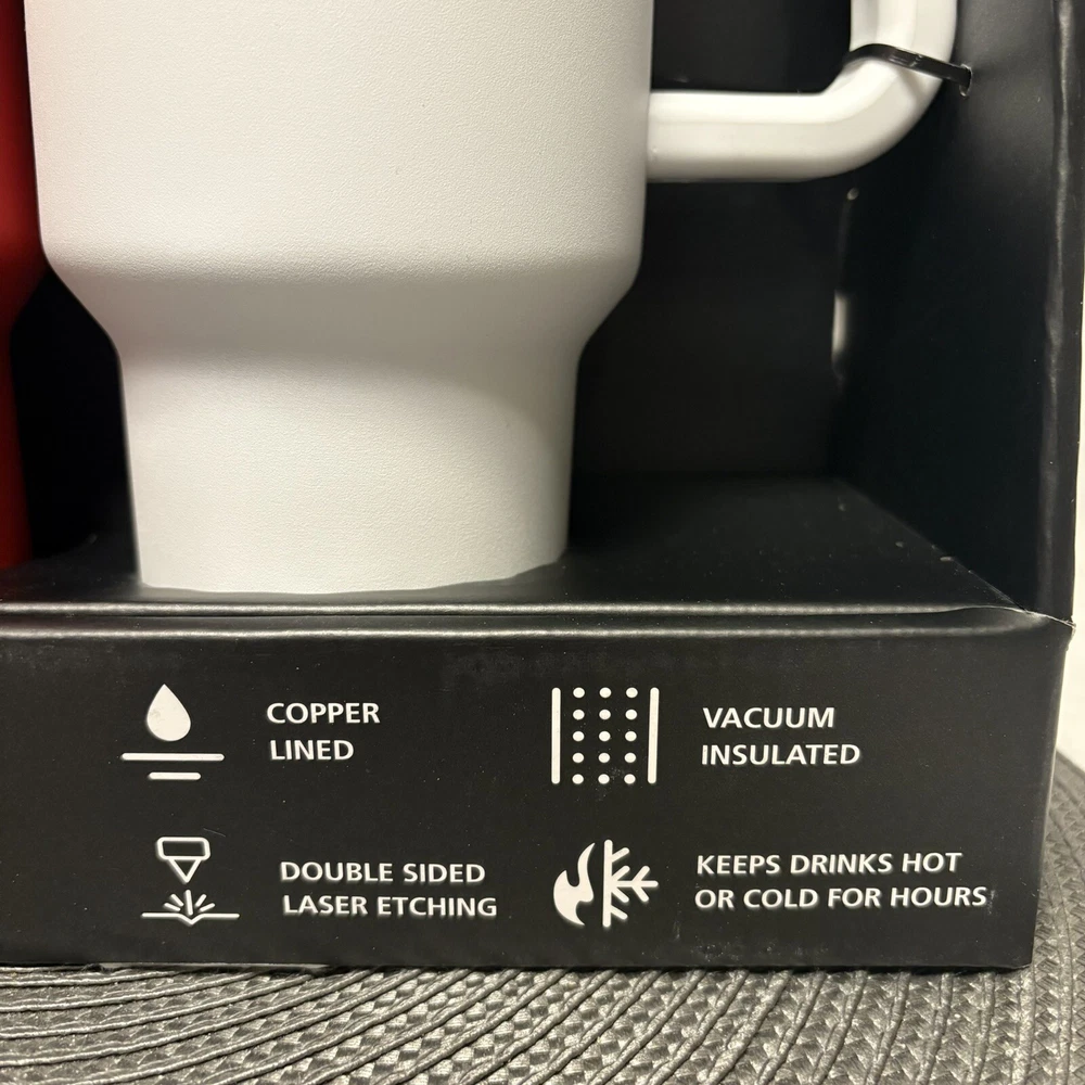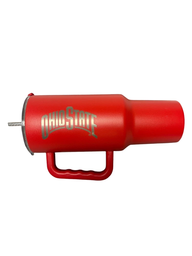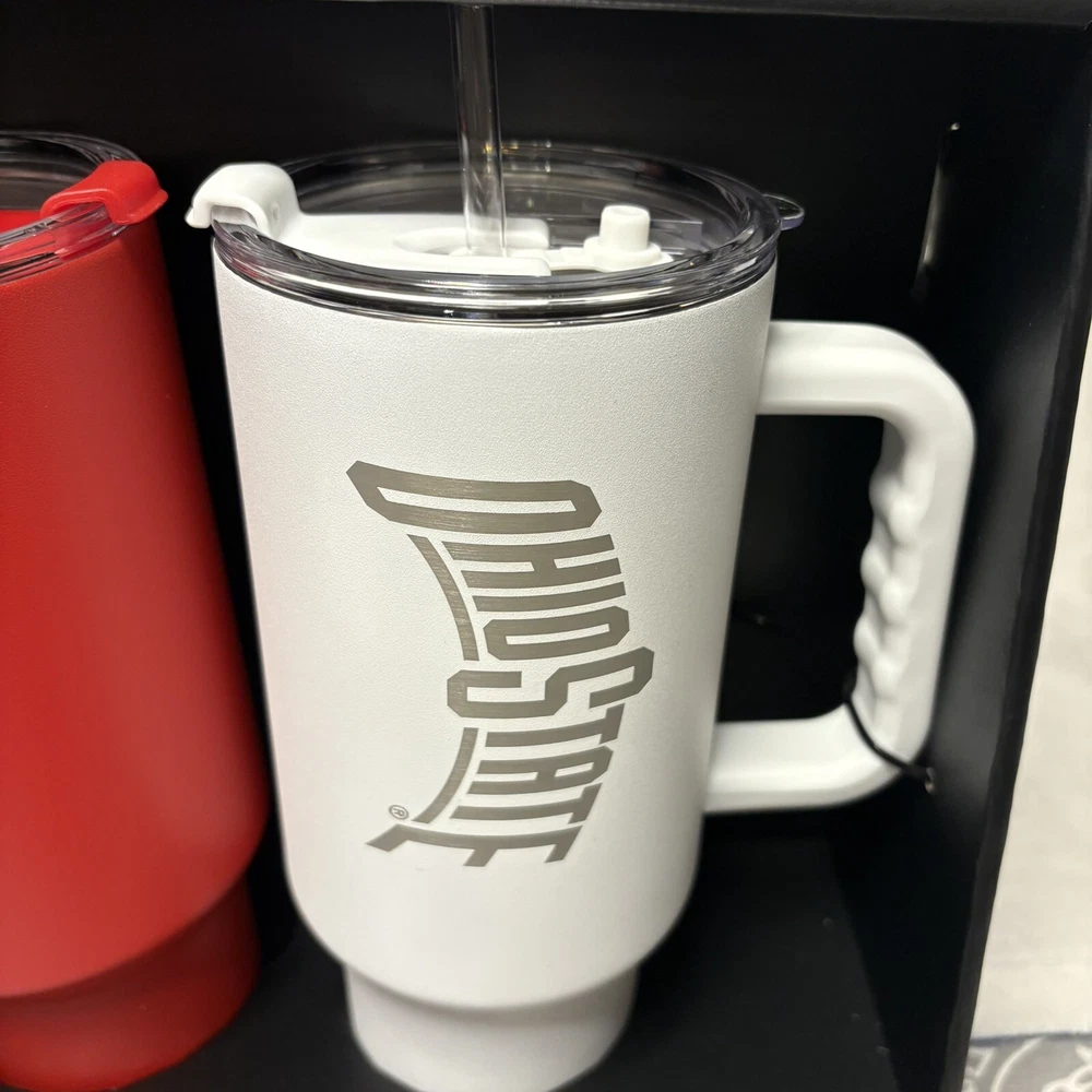 Ohio State Tumblers SET OF 2 40 Oz. Copper Lined Etched Logo on 2 sides Vacuum Insulated Oversized Handle Reusable Straw Dishwasher Safe Fits in most cup holders One White and One Red