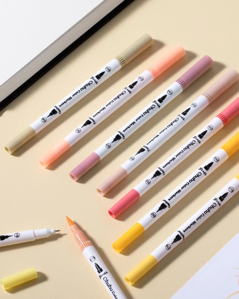 BRUSH & FINE, DOUBLE TIPS, DOUBLE CREATIVITY: These dual-tipped adult coloring marker pens are a must-have for your next masterpiece. The 0.4mm fine tip can glide through the details for intricate coloring, writing, and doodling with fluid precision while the 1-2mm soft brush tip flows through the large area art projects for shading, coloring, blending and more, perfect for calligraphy and creating interesting pattern to design your journal. 36 VIBRANT COLORS CODED WITH NUMBERS FOR FINDING COLORS FAST: This dual brush marker set includes 36 vibrant colors, and each pen is numbered for easier finding your preferred colors. Also, a blank DIY color swatch card is included so that you can edit and organize the colors according to your preferences. NON-BLEEDING INK, PERFECT FOR COLORING BOOKS & JOURNALING: The real benefit of these pens is that you do not have to worry about the bleeding-through problem or your paper is too thin to hold the ink. It won't bleed beyond the line or destroy the next pages. Just use the pens to color your coloring book and design your journals and planner. ACID-FREE & NON-TOXIC WATER-BASED INK: The highly pigmented acid-free allows your artwork to last against fading. It's also a huge plus that the ink is non-toxic and water-based, which is 100% safe for both you and your kids. WHAT YOU WILL GET: These pens are packed in a delicate well-design container which is perfect as a birthday, christmas, valentines day , back to school or just a random gift; Besides, in this package, you will also receive a pre-printed number color swatch card. TO ACHIEVE WATERCOLOR EFFECTS: The ink is water-soluble and you can achieve beautiful watercolor effects by pre-wetting an area first with an aqua brush pen (not included) and then color the area with the colors you want to blend. Note: Since it needs water to blend the colors, please used watercolor paper or mix media paper to prevent bleeding.