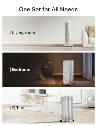 Why choose Oil-filled Heater? Oil-filled radiator provide the most efficient and cost effective electrical heating solution for longer term use. They are ideal for medium to large rooms needing constant temperature. Safety Technology of Oil-filled Heater Over-heating protection - Being applicable to the elderly people and children It possesses the double automatic temperature limiter, which can automatically power off in case of excessive temperature, so both the elderly people and children can use it directly. Safety tip-over switch built in β Safety providing warmth to you every moment If the machine is fallen, it can automatically power off, to prevent the occurrence of dangers. Flame-resistant material β Comprehensively prevent the fire Flame-resistant material is provided for all plastic parts, which can prevent the high temperature from starting a fire, so it is safer without open flame. ππππ π―ππππππ, π³ππππππ πͺππππππ: The 1500W power heats the whole house rapidly and the hot air circulation delivers long-lasting and gentle warmth which avoids dryness in winter, making oil heater your best choice π¬πππππ π¬ππππππππ: Equipped with 3 heating modes 600W/900W/1500W, which can also be used in combination to help save energy bills in winter πΎππππππ-πΈππππ: Lacking of fan construction, oil heater is super quiet, perfect for bedrooms, offices, rooms and other indoor places where not fan of noise πͺππππππππππππ πΊπππππ: Power indicator light lets you know the unit is ON, built-in safety, over-heat protection and tip-over safety switch shuts heater off if accidentally knocked over π·πππππππ π«πππππ: 4 heavy-duty universal casters and the front carrying handle make it easy to satisfy your needs of heating different rooms