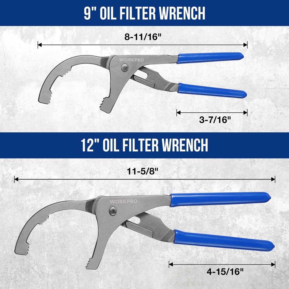 Oil Filter Wrench Set, 9" & 12" Adjustable Oil Filter Removal Pliers Tools, Ideal for Engine Filters, Cars, and Trucks, 2-piece WHAT YOU GET- The adjustable oil filter wrench set includes 9-inch and 12-inch adjustable wrenches. This is particularly useful if you have several vehicles with filters of various dimensions. The set would be good for basic home use, such as auto motorcycles, truck repairing, installing oil filters and removal, and general assembly tasks HIGH-QUALITY MATERIAL- The materials of wrenches determine their durability. Our wrench head is made of high-quality forged carbon steel, heat-treated for durability. Drop-forged construction and corrosion-resistant black finish prolong the service life 5-POSITION SLIP JOINT DESIGN & ADJUSTABILITY- The 12" oil filter clamp has a maximum opening of 3-3/4" and a minimum opening of 2-1/2". The 9" plier can be fit for 1-3/4" to 3" oil filter. If your filter fits within these diameter dimensions it will work. In addition, the 5-position slip joint is designed to quickly adjust to size, and large teeth are set at a right angle to the jaw so they bite in either direction for a sure grip on slippery, oil-covered filters LONG REACH- The long enough handle provides extra reach and leverage in tight places. The bigger ones have longer handles and grips and can help you get to areas in which the oil filter is hard to reach ANTI-SLIP DESIGN- Good quality and the handles definitely save your hands strength and supply a great grip. With sure-grip teeth, forged jaws grab the filter firmly and grip even slippery, oil-covered surfaces. oil filter wrench is able to remove even the tightest of the oil filters and will require you only a little effort to remove it Oil Filter Wrench/Pliers Set, 2-piece, 9’’ & 12’’, Adjustable Oil Filter Removal Tool, for Engine Filters, Cars, and Trucks Shipping We offer FREE shipping on all orders! We ship within Three business days of payment, usually sooner. We use a selection of shipping services such as UPS, FedEx, USPS etc. We only ship to the lower 48 states, no APO/FPO addresses or PO Boxes allowed. Local pickups and combined shipping options are not provided at this time. Return You can return a product for up to 30 days from the date you purchased it. Any product you return must be in the same condition you received it and in the original packaging. Please keep the receipt. Payment We accept payment by any of the following methods: PayPal Please pay as soon as possible after winning an auction, as that will allow us to post your item to you sooner! Feedback Customer satisfaction is very important to us. If you have any problem with your order, please contact us and we will do our best to make you satisfied. Contact Us If you have any queries, please contact us via ebay. We usually respond within 24 hours on weekdays. Please visit our eBay store to check out other items for sale! Thank you for shopping at our store.
