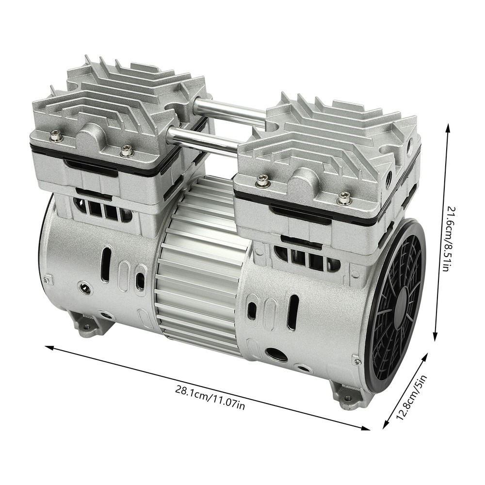 Description This oil-free vacuum pump operates without any fuel and does not pollute the environment, making it a popular choice for food companies, pharmaceutical companies, and electrical companies. Made of high-quality copper, aluminum, and iron, it has good heat dissipation and is durable. Its pure copper motor ensures stable operation, low noise, and high efficiency, providing a better user experience. Key Features Sturdy and Durable: It is made of high-quality copper, aluminum, and iron and adopts a painting process, making it robust, rust-proof, and corrosion-resistant, ensuring a long service life. Excellent Heat Dissipation: The powerful cooling fan and multiple heat-sink holes on the machine effectively dissipate heat to ensure continuous work without overheating, thus extending its service life. High Efficiency: It adopts a pure copper motor with 800W power, a high speed of 1700rpm, and low loss, which can greatly improve work efficiency. Environmentally Friendly and Convenient: This oil-free vacuum pump can be operated without any media, making it environmentally friendly. It also eliminates the need for regular maintenance and frequent refueling, which is very time-saving and convenient. Low Noise: All-copper motor, the external silencer, and the thickened wall ensure good noise reduction(65dB), equivalent to the sound produced by high-power washing machines, giving you a quieter and more comfortable working environment. High Safety: It has overload protection and overheating protection. When the temperature reaches 275°F, it automatically cuts off the power supply to prevent the motor from burning out due to high-temperature operation. In addition, its insulation level reaches level B, ensuring safe use. Thoughtful Design: The pre-drilled holes on the base ensure firm installation on the countertop, making it stable to operate. Its compact size(11.06*5.04*8.5in) will not occupy much countertop space. Guaranteed Customer Service: We aim to provide quality products and services. If you have problems, please feel free to contact us. We will reply and solve the problem for you as soon as possible. Details Rubber Foot Pads : They help dampen vibrations, ensure stable running, and avoid scratching the countertop. Precision Thread: Standard G1/4 thread ensures a sturdy connection and is not easy to fall off. Application It is suitable for gas tightness experiments, surgical vacuum suction, food processing, medical machinery, laboratory, beauty equipment, medical, vacuum molding, plastics, hydraulic presses, food packaging, and processing, hospital negative pressure systems, environmental protection industries, electronics industries, laboratories, chemical industries, central vacuum systems, printing industries, vacuum defoaming, and vacuum adsorption. Specification Material: Copper, Aluminum, Iron Process: Painting, Stamping Lubrication Type: Oil-Free Motor Type: All Copper Motor Assembly Required: Yes Style: Modern Color: Silver Power Source: Corded Electric Insulation Class: B Capacitor: Red Line(70UF) Voltage: 110V 60Hz Power: 800W Noise: 65dB Speed: 1700rpm Thread: G1/4 Rated Pressure: 8Bar Max. Vacuum: -0.92Bar Air Flow Speed: 125L/132Qt/min Ambient Temperature: 0-45°C/32-113°F Overheating Protection: 135°C/275°F Power Cable Length: 55cm/21.7in Capacitor Cable Length: 35cm/13.78in Product Size: 28.1*12.8*21.6cm/11.06*5.04*8.5in Packing Size: 25*12*11cm/9.8*4.7*4.3in Gross Weight: 10.96kg/24.16lbs Package Included 1 x Oil-free Vacuum Pump 1 x Silencer 1 x Capacitor 4 x Foot Pads Notes This item does not include a filter or pressure-regulating valve. Please do not use it to pump liquid, alcohol, or oil. Please allow the slight color difference caused by the shooting light and 1-3cm error due to manual measurement, and make sure you do not mind before ordering. Payment Delivery details Terms of sales About us Contact us Payment We accept ebay payment 。 Fees such as import duties, taxes are not included in the item price or shipping costs. These charges are the buyer's responsibility. Delivery details Shipping: 2-9 working days to: USA Terms of sales We maintain high standards of excellence and strive for hundred percent customer satisfaction. Feedback is very important to us. We hope that you contact us immediately before you give neutral or negative feedback, so that we can address your concerns. It is impossible to address issues if we do not know about them! About us Your satis faction is our ultimate goal. We work hard to earn your trust and future business. Our certified technicians have tested each item before shipping. The unit comes with 1 year limited warranty on all manufacturing defects. a) If you receive a defective item, you may return it or ask for a discount. Please contact us within 14 days after you receive the package. b) What you returned must be intact and in its original packaging as re? u. Customer is responsible for shipping costs of the returned item. c) We will cover the cost of shipping back t with the shipping rate indicated in the registration page. We will send you a new unit or refund the full payment you paid. Thank you. Contact us Business Hour Business Hour: Monday To Friday: 8:30 AM to 5:00 PM (Beijing China time) Due to time zones, our reply to your questions may not be immediately. But within above working time, we will reply your email within 24 hours. If it's non-workdays, please kindly be patient and wait till Monday. Please contact us with ebay message. Please feel free to contact us if you have any questions. Monday To Friday: 8:30 AM to 5:00 PM (Beijing China time) Due to time zones, our reply to your questions may not be immediately. But within above working time, we will reply your email within 24 hours. If it's non-workdays, please kindly be patient and wait till Monday. Please contact us with ebay message. Please feel free to contact us if you have any questions. On Feb 27, 2026 at 17:46:50 PST, seller added the following inf
