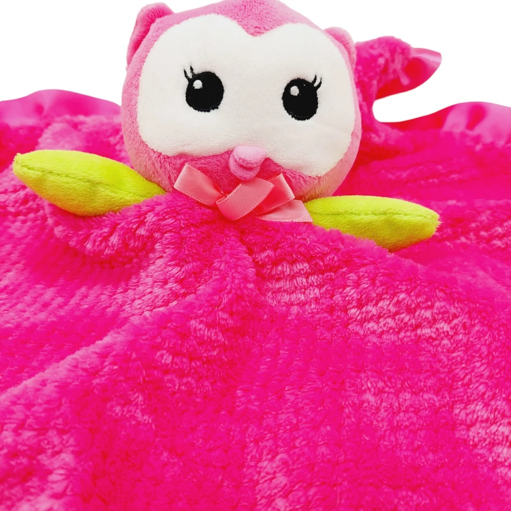 gtin13:Does not applyColor:Hot PinkCountry/Region of Manufacture:IndonesiaMPN:Does Not ApplyCustom Bundle:NoTo Fit:Little HandsType:Security BlanketBrand:Okie DokieUPC:Does not applyFeatures:Easy CareTheme:OwlGender:GirlsModified Item:NoMaterial:PolyesterSize:14" squareModel:Blanket
