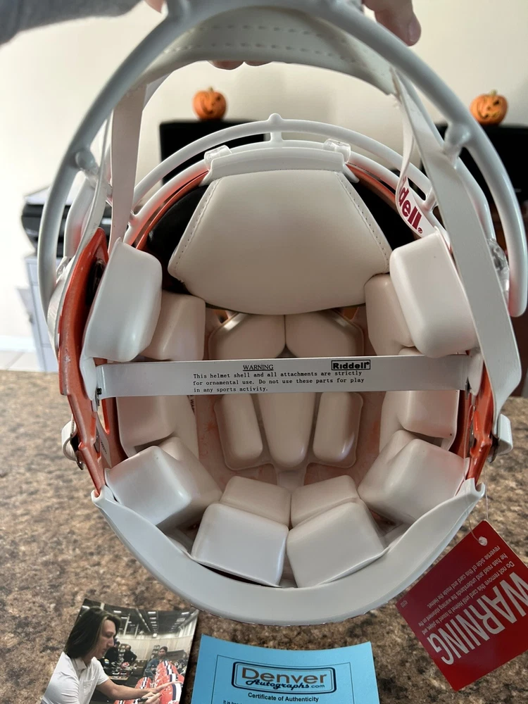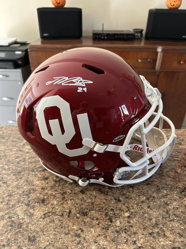 Showcase your love for Oklahoma State football with this full-sized autographed replica helmet. This helmet is the perfect addition to any sports fan's collection. It is an original, signed Joe Mixon product that boasts the team's signature and style. Ideal for display in your home or office, this helmet is a must-have for any die-hard Oklahoma State fan. It is a perfect gift for your loved ones who share your passion for football. This autographed replica helmet is a unique and stylish way to show your support for your favorite team.