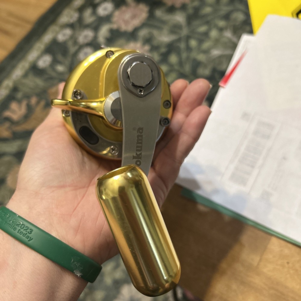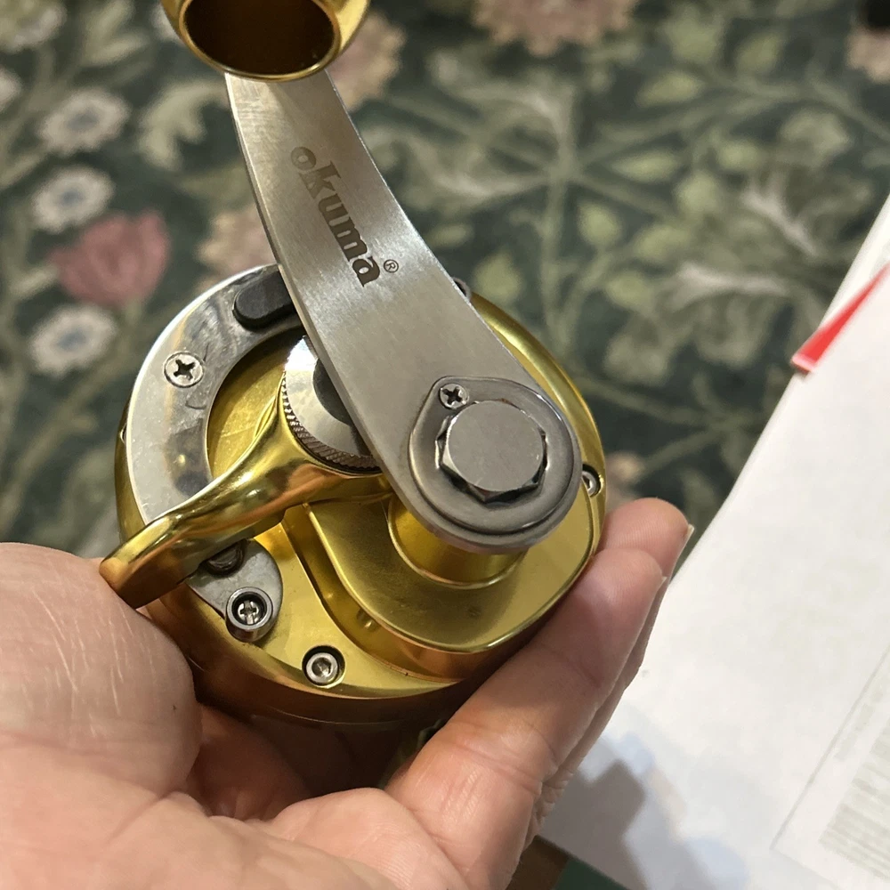 This reel has never been used, mint, Okuma Titus Gold TG10 lever drag conventional reel in mint condition. Never been used. All-metal construction with a strong, smooth drag system. Built for offshore use and known for durability and reliability. Ideal size for sailfish, mahi, tuna, and light offshore trolling or kite fishing setups. Solid reel from the original Titus Gold series.