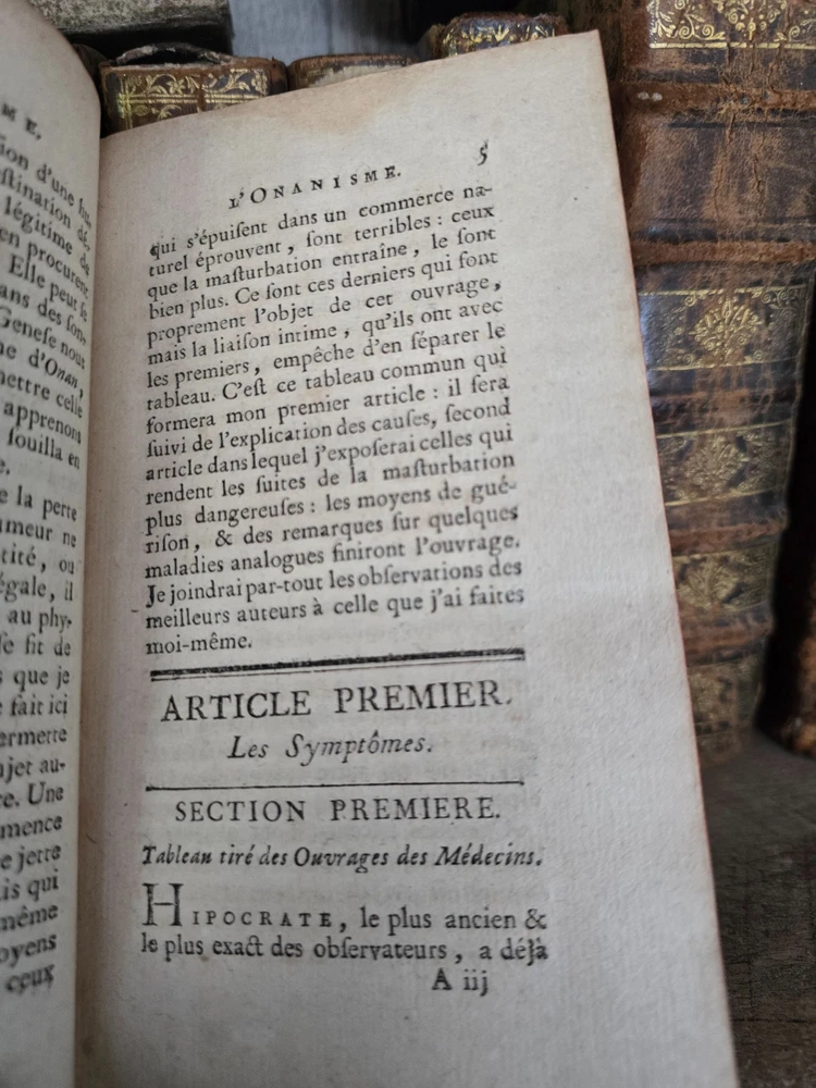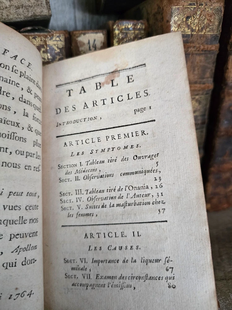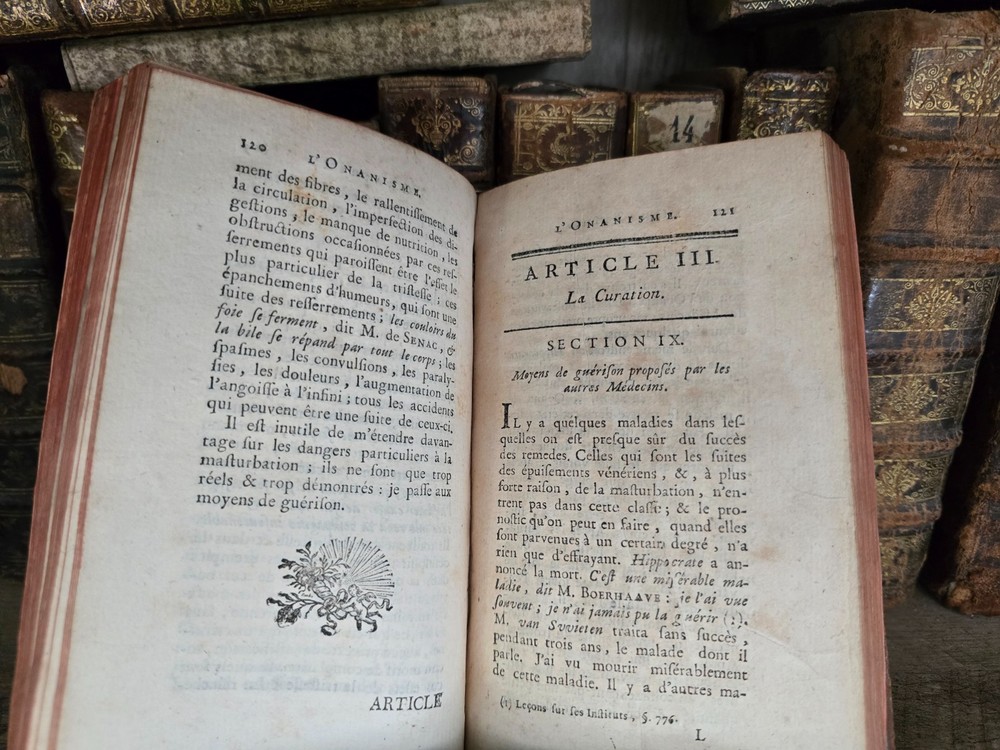 " Onanism. Dissertation on the Diseases Produced by Masturbation " Description: The book is titled " Onanism. Dissertation on the Diseases Produced by Masturbation " by Dr. Samuel Auguste André David Tissot, published in Lausanne in 1766 (third edition, considerably enlarged). This work became one of the most famous medical treatises of the 18th century on the supposed dangers of masturbation. It represents the medical, moral, and social anxieties of the Enlightenment period regarding sexuality, especially linking solitary practices to physical and psychological illness. Tissot’s text was highly influential in shaping European and later 19th-century medical discourse about sexual health, often used as a reference in moral and medical debates. Table of Contents: Introduction Article I – The Symptoms Section I. Survey of writings by physicians Section II. Communicated observations Section III. Extracts from Onania (earlier English treatise, 1712) Section IV. Observations by the author Section V. Consequences of masturbation in women Article II – The Causes Section VI. Importance of seminal fluid Section VII. Examination of circumstances accompanying emission Article III – The Cure Section VIII. Causes of danger particular to masturbation Section IX. Remedies proposed by other physicians Section X. Author’s own methods: Air Diet Sleep Exercise and movement Evacuation (bodily purging) Passions (control of emotions) Medicines Article IV – Related Diseases Section XI. Nocturnal emissions (wet dreams) Digression on diseases from excessive seminal loss Section XII. Simple gonorrhea Summary: Dr. Tissot argues that masturbation (referred to as onanism , after the biblical figure Onan) is not a harmless act but a destructive one leading to severe physical and psychological illnesses. He claims it causes weakness, memory loss, nervous disorders, digestive troubles, and even premature death. The treatise begins with collected medical observations and earlier literature, then expands into his own clinical notes. Tissot emphasizes that semen is a vital fluid, essential to strength and life, and that its loss leads to wasting diseases. He categorizes symptoms, explores supposed causes, and finally proposes cures: regulation of diet, air, sleep, exercise, and occasionally medicines. He also extends his analysis to related conditions such as nocturnal emissions and venereal diseases. Although now discredited, the book was extremely influential in Europe and America, fueling centuries of medical and moral campaigns against masturbation. It reflects Enlightenment-era attempts to link physiology, morality, and social order into a unified medical discourse. Pages: 270 Size: 6.6" x 4" x 1.2" See other $0.99 items
