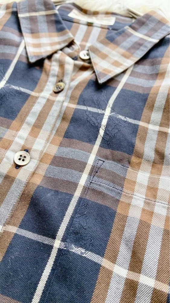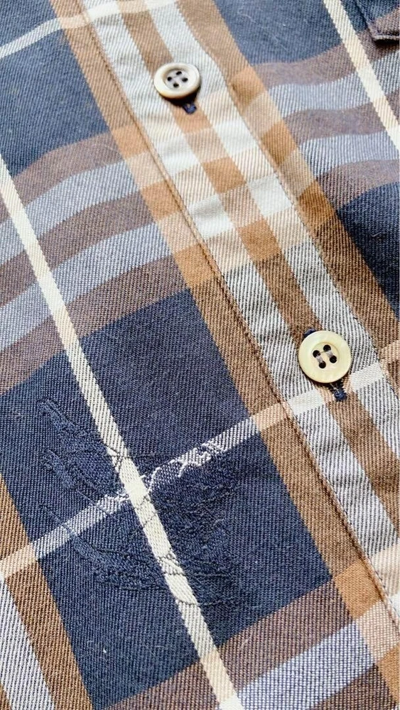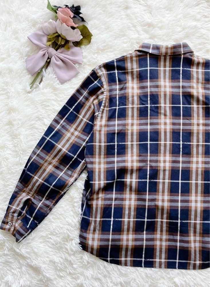Old Burberrys Check Shirt Long sleeve Navy Jacquard Cotton Women Size 9 Used