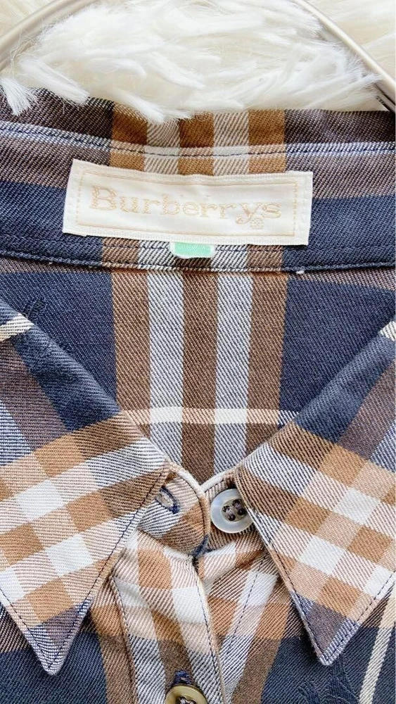 Pattern: Check Handmade: No Sleeve Type: NA Occasion: Business, Casual, Travel Closure: Button Color: Blue Brand: Burberry Accents: Button Fabric Type: NA Neckline: Collared Style: Basic Features: NA Department: Women Strap Type: NA Garment Care: NA Material: Cotton Vintage: No Size Type: Regular Personalize: No Type: Button-Up UPC: Does not apply Character: NA Sleeve Length: Long Sleeve Theme: NA Season: Fall, Spring, Winter Size: 9 MPN: NA gtin13: Does not apply Fit: Slim