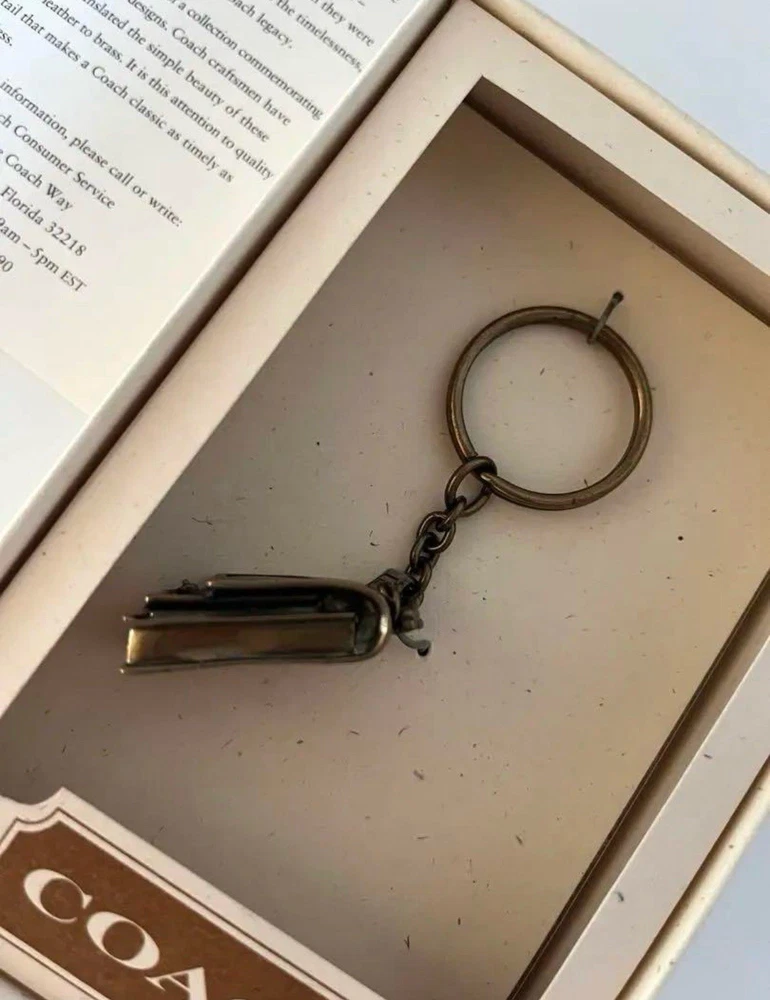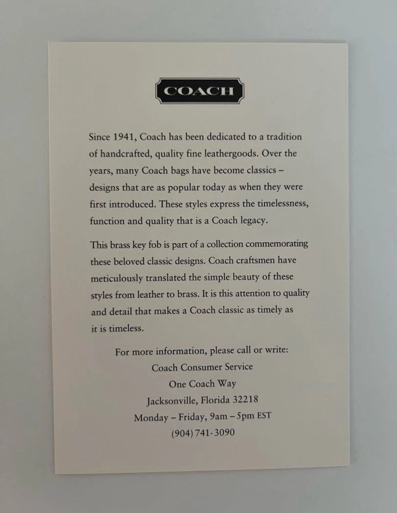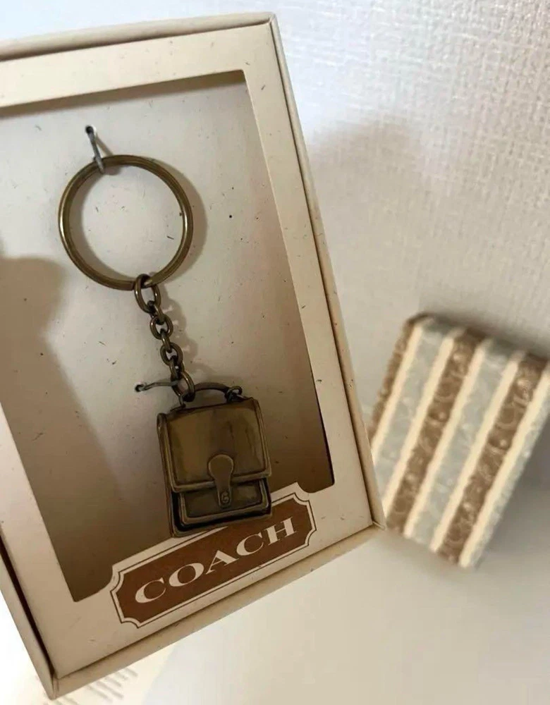 Old Coach Vintage Station Bag Brass Keychain Key Ring w/ Original Box